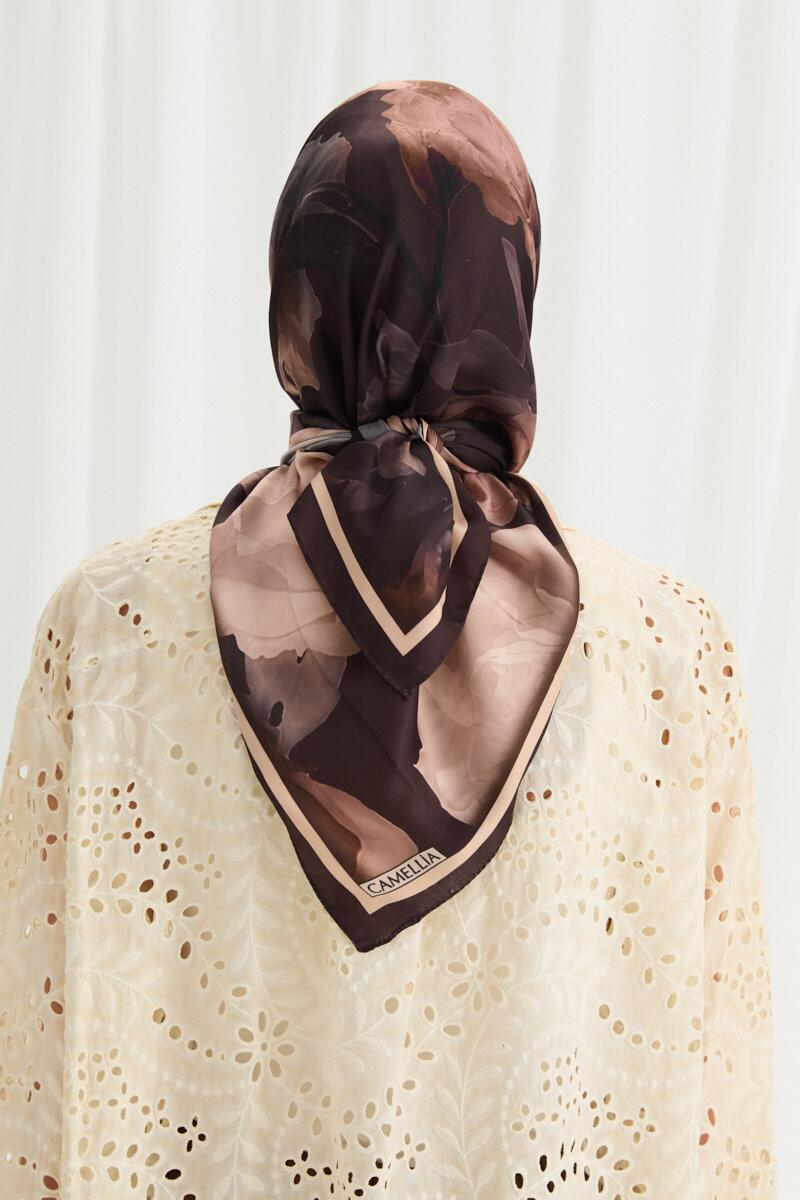 Lotus Desen Soft Eşarp - Koyu Kahve - Camellia Scarfs Lotus Desen Soft Eşarp - Koyu Kahve - Camellia Scarfs (1)