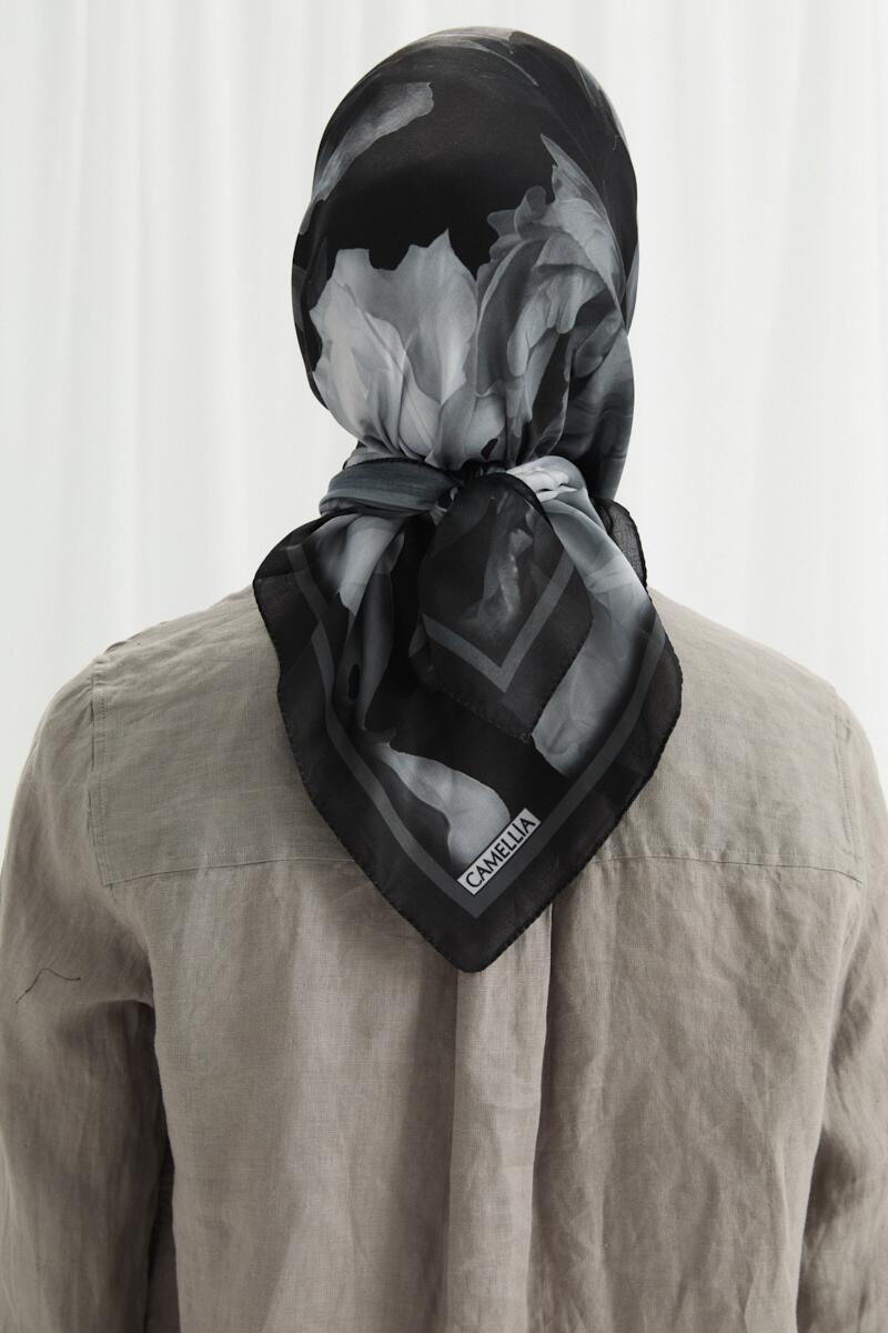 Fiore Desen Soft Eşarp - Siyah - Camellia Scarfs Fiore Desen Soft Eşarp - Siyah - Camellia Scarfs (1)