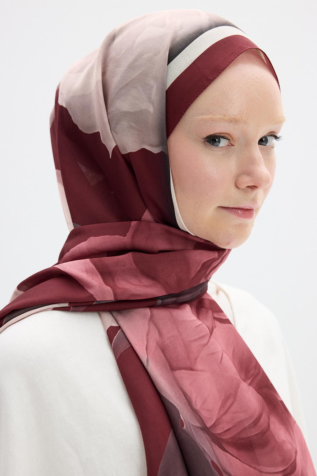 Lotus Desen Soft Şal, Bordo renginin estetiğini ve lotus çiçeğinin zarafetini modern bir çizgide buluşturuyor. Pamuksu dokusuyla gün boyu konforlu bir kullanım sunan bu parça, her bağlama stilinde estetik duruşunu korur. Hem günlük stilinize hem de özel davetlerinize eşlik edecek şekilde tasarlanan bu seri, renklerin canlılığını ve desenlerin netliğini uzun süre koruyan özel bir yapıya sahiptir.