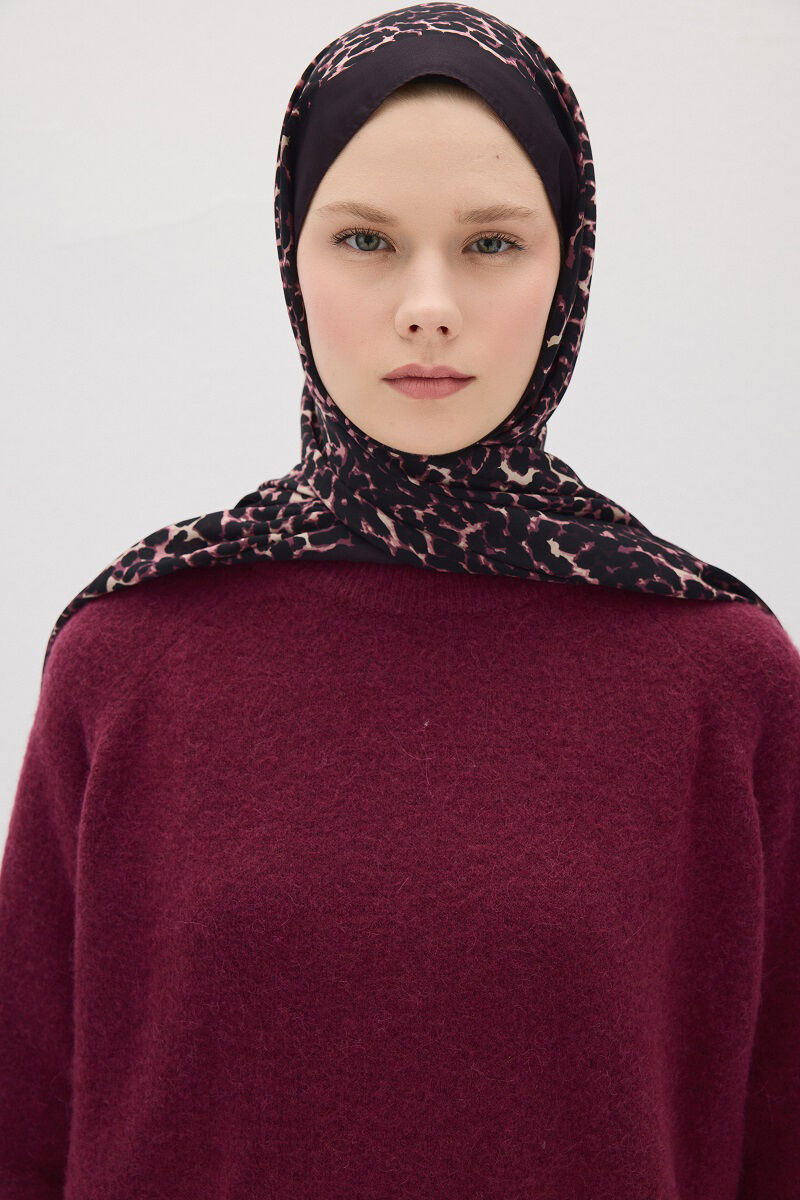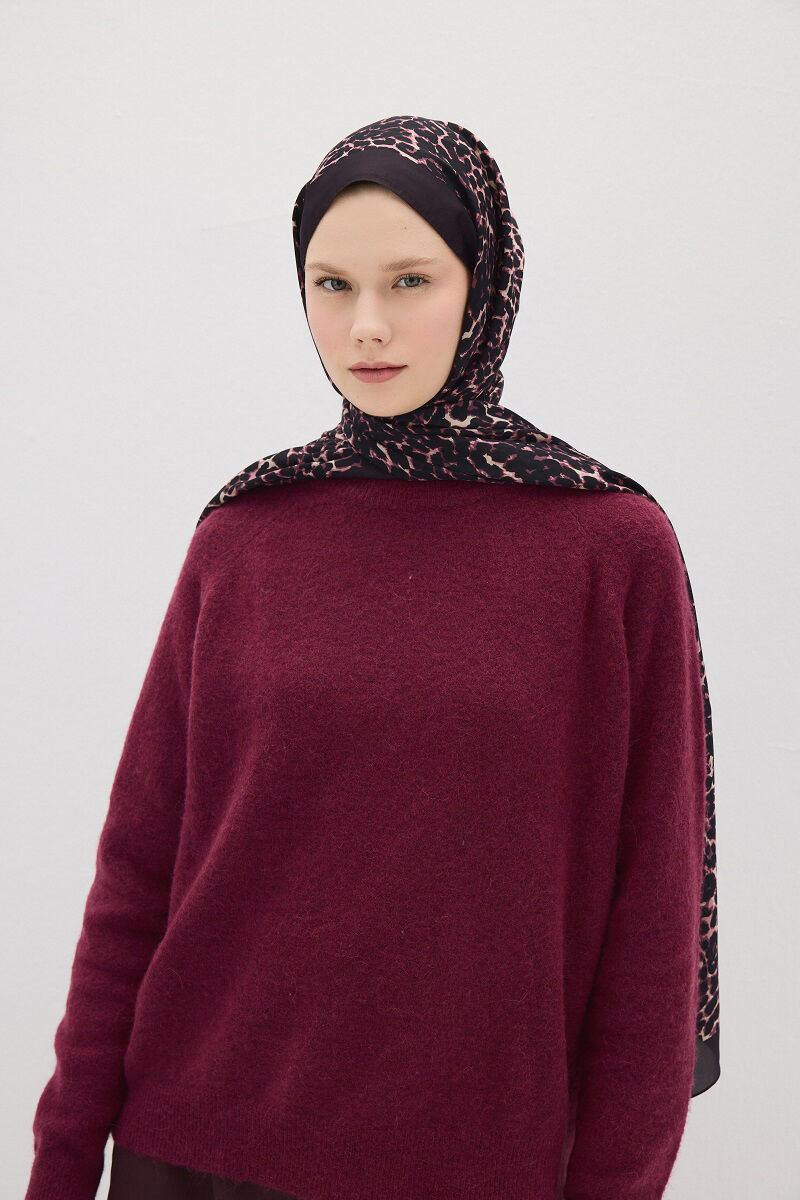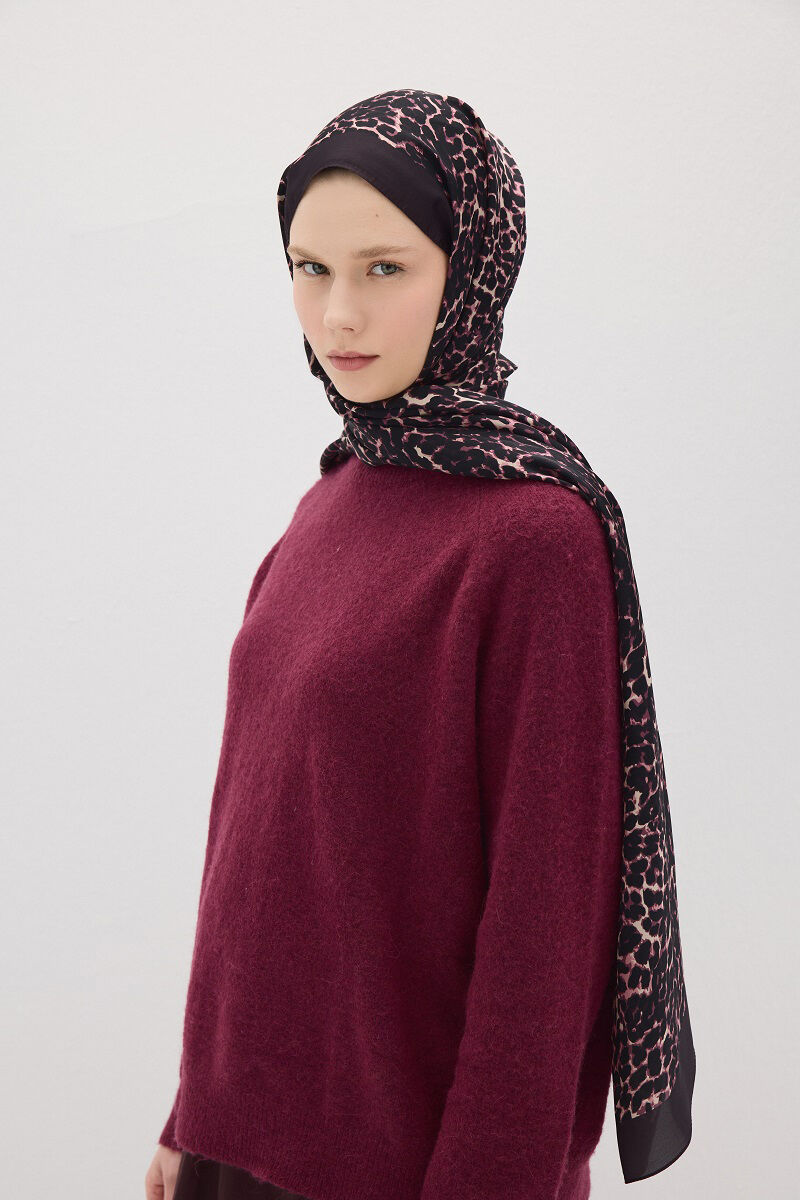 Lumier Collection Leopar Desen Şal Mürdüm renk ile tarzınızı cesur bir şıklıkla tamamlayın! Bu özel tasarım, ipeksi dokusuyla zarafetin ve konforun mükemmel uyumunu sunar.