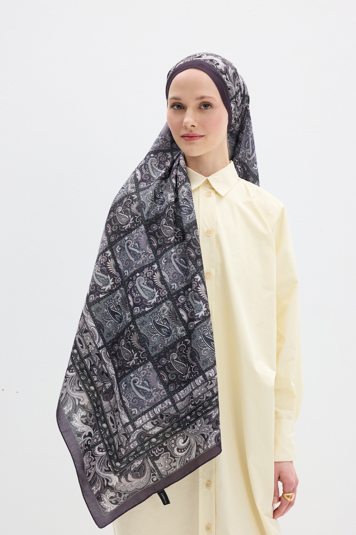 Ebruel Kraş Şal - Mürdüm - Camellia Scarfs Ebruel Kraş Şal - Mürdüm - Camellia Scarfs (1)