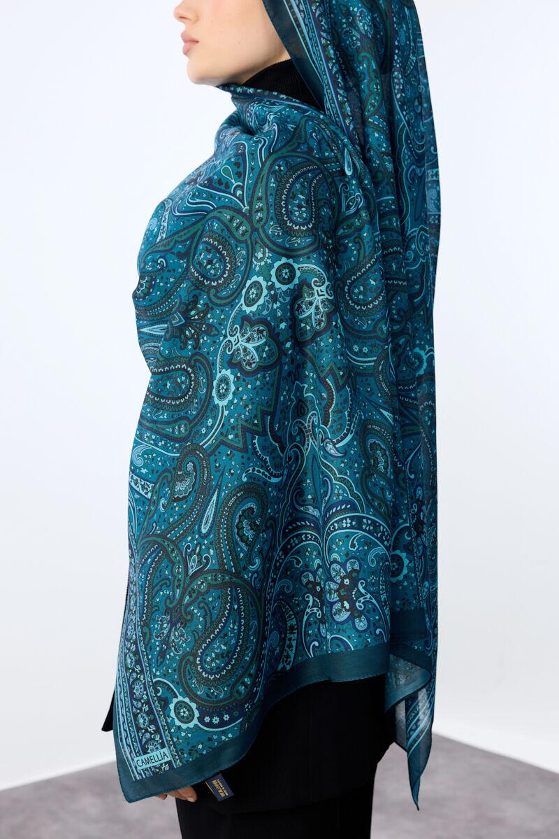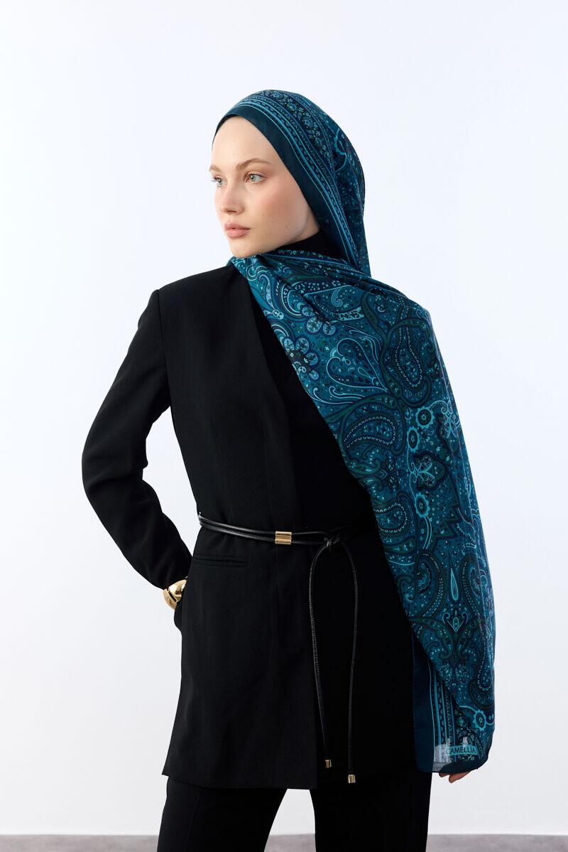 Camellia Scarfs ile şıklığınızı tamamlamak için tasarlanan bu özel Marrakech Desen Şal - Turkuaz renk, zarafetin ve konforun mükemmel bir birleşimini sunar.