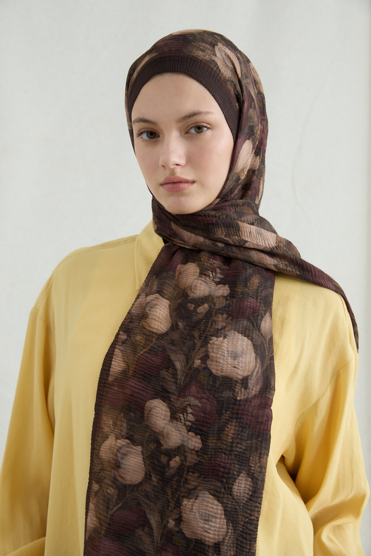 Merry Müslin Şal, Kahve renginin canlılığı ve modern dokusuyla stilinizi tamamlayan özel bir parçadır. Canlı tonlarıyla her kombine enerji katan bu özel seri, solmaya karşı dirençli kumaş yapısı sayesinde ilk günkü şıklığını uzun süre korur. Geniş ölçüleri, farklı bağlama stilleriyle hem günlük hem de özel gün kombinlerinizi zarafetle tamamlamanız için tasarlanmıştır.