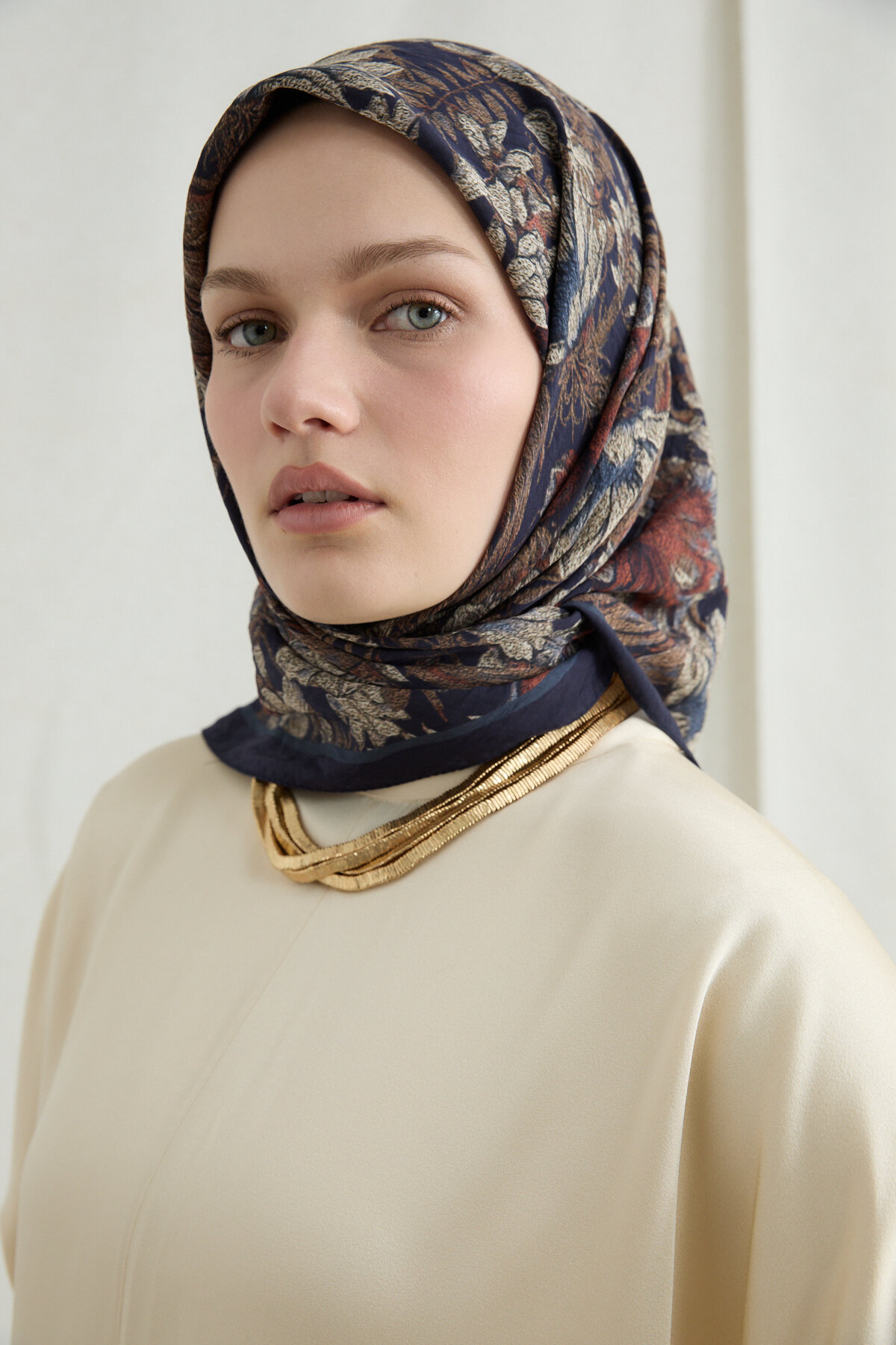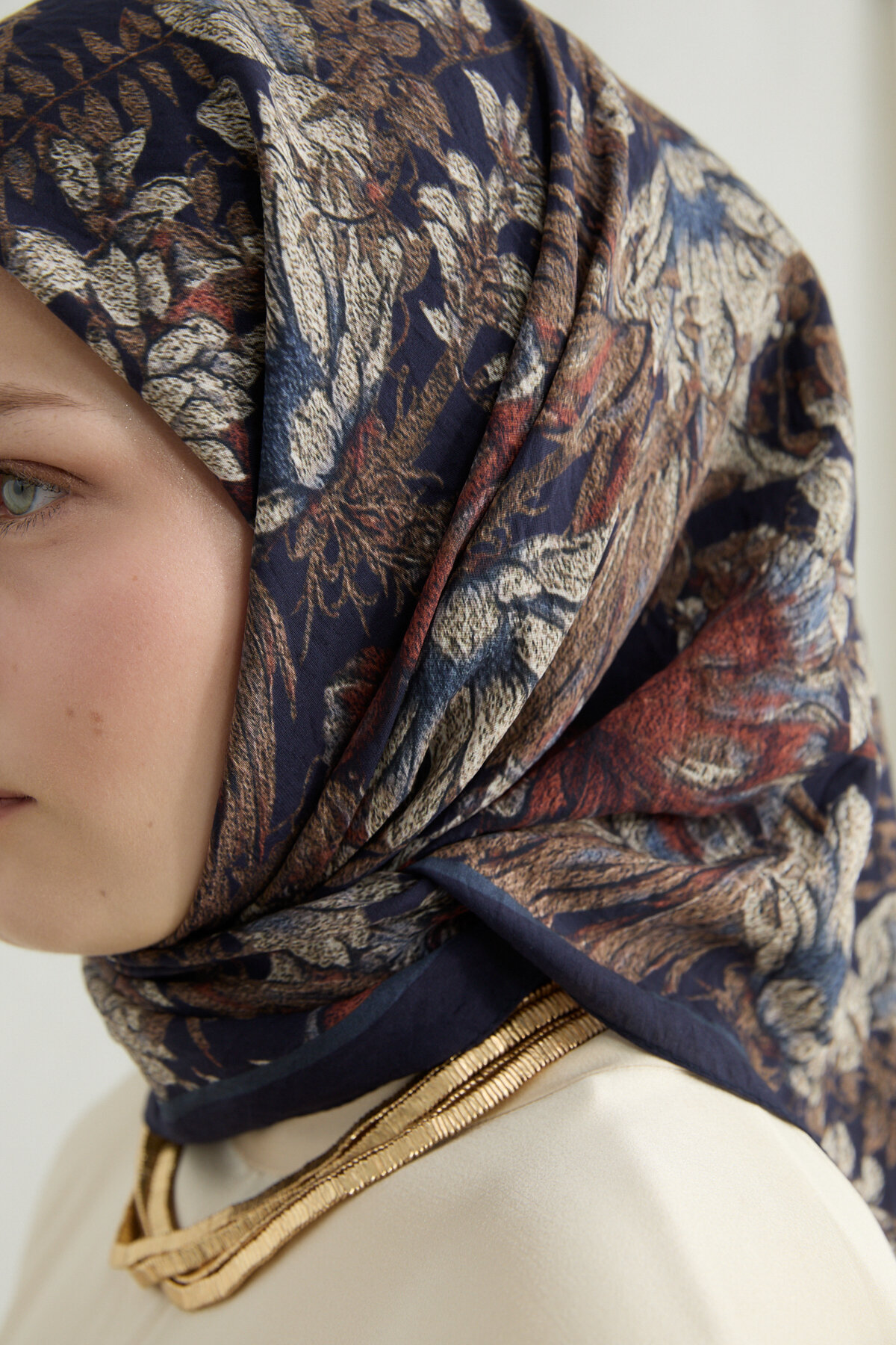 Mona Pamuk Viskon Eşarp - Lacivert Bej - Camellia Scarfs Mona Pamuk Viskon Eşarp - Lacivert Bej - Camellia Scarfs (1)