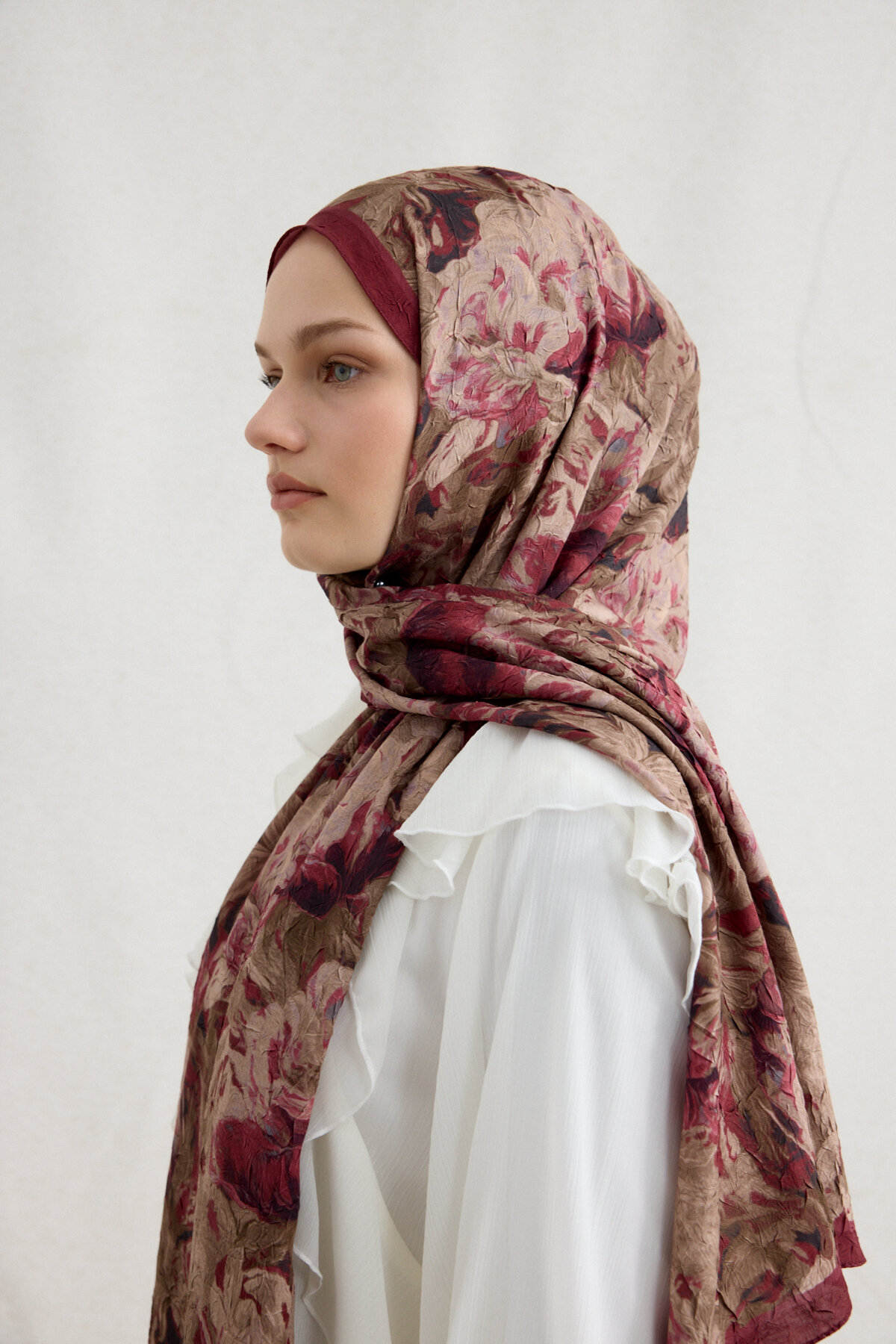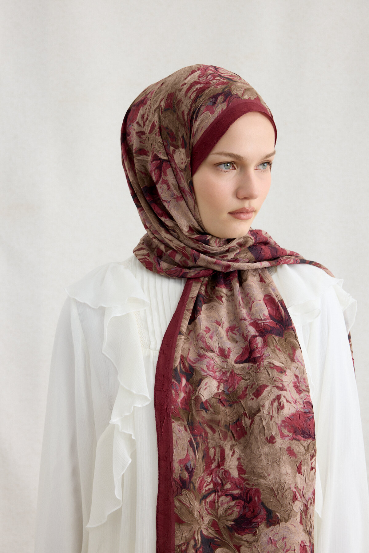 Monaco Kraş Şal - Bordo Bej - Camellia Scarfs Monaco Kraş Şal - Bordo Bej - Camellia Scarfs (1)