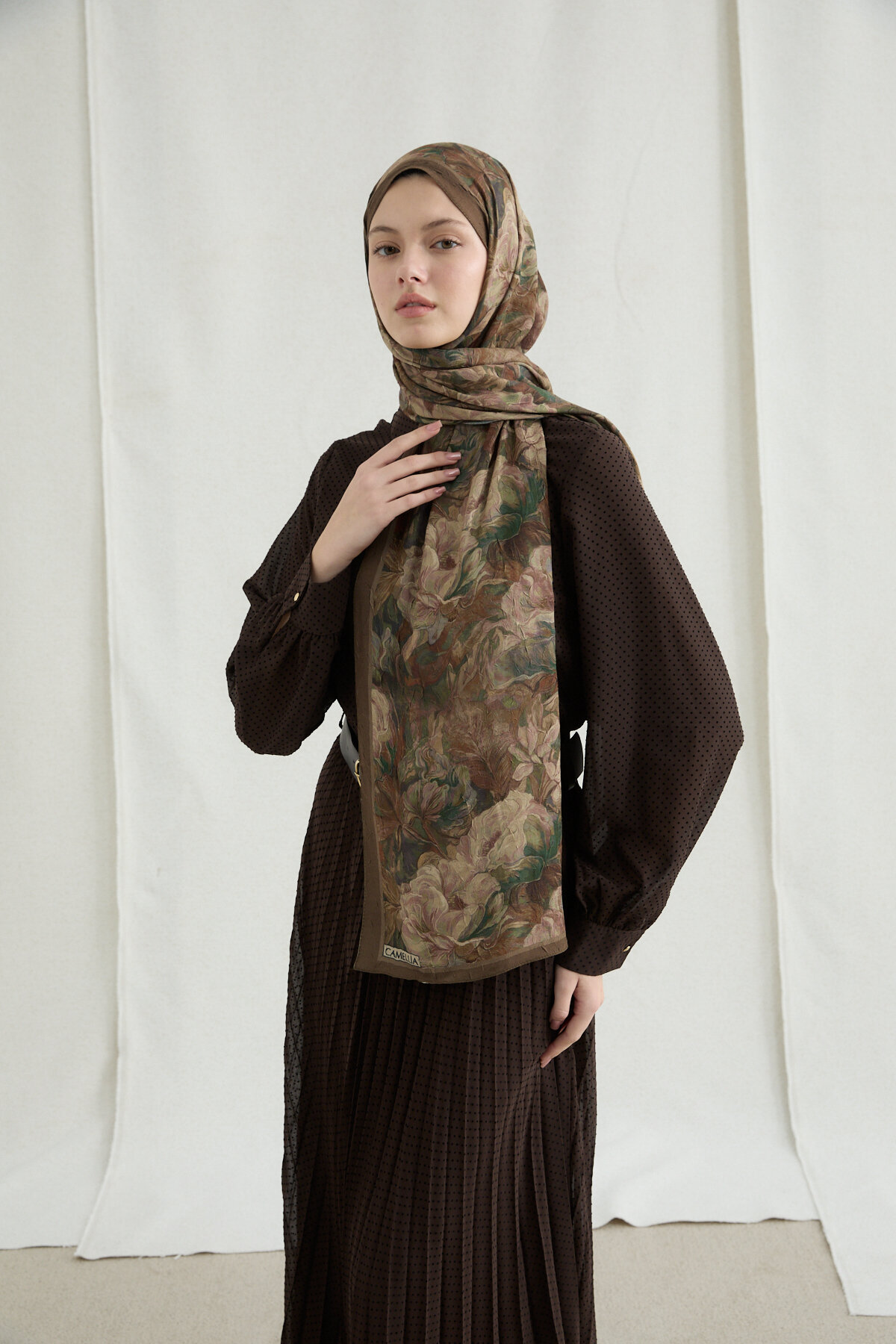 336,00 TLMonaco Kraş Şal, Olive renginin huzur veren enerjisini, kraş kumaşın doğal ve modern dokusuyla bir araya getiriyor. Kumaşın kendinden hafif buruşuk yapısı sayesinde hem hacimli hem de tok bir duruş sergileyen bu model, her bağlama stilinde zarafetinizi ön plana çıkarır. Desenlerin kumaş üzerindeki dengeli dağılımı, şalınızı nasıl bağlarsanız bağlayın estetik görünümün korunmasını sağlar.