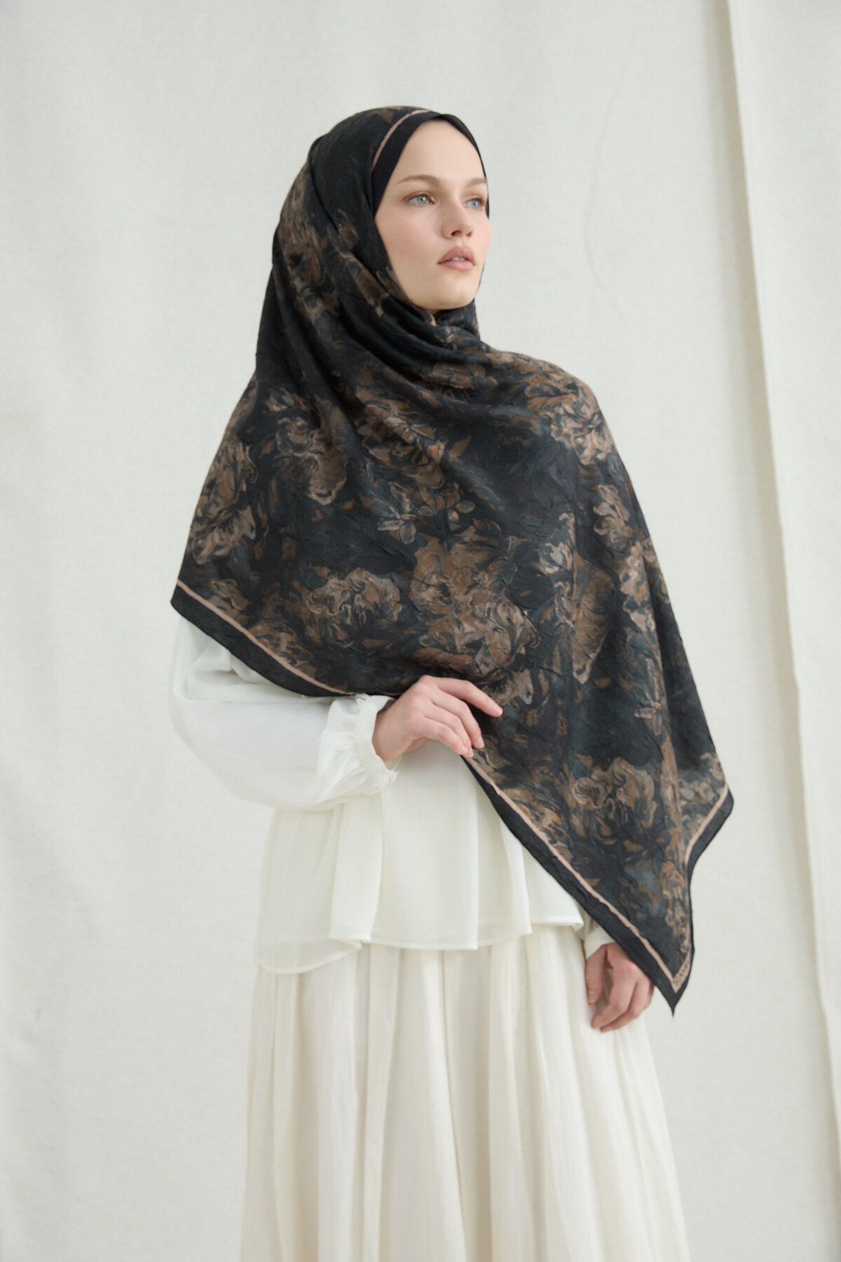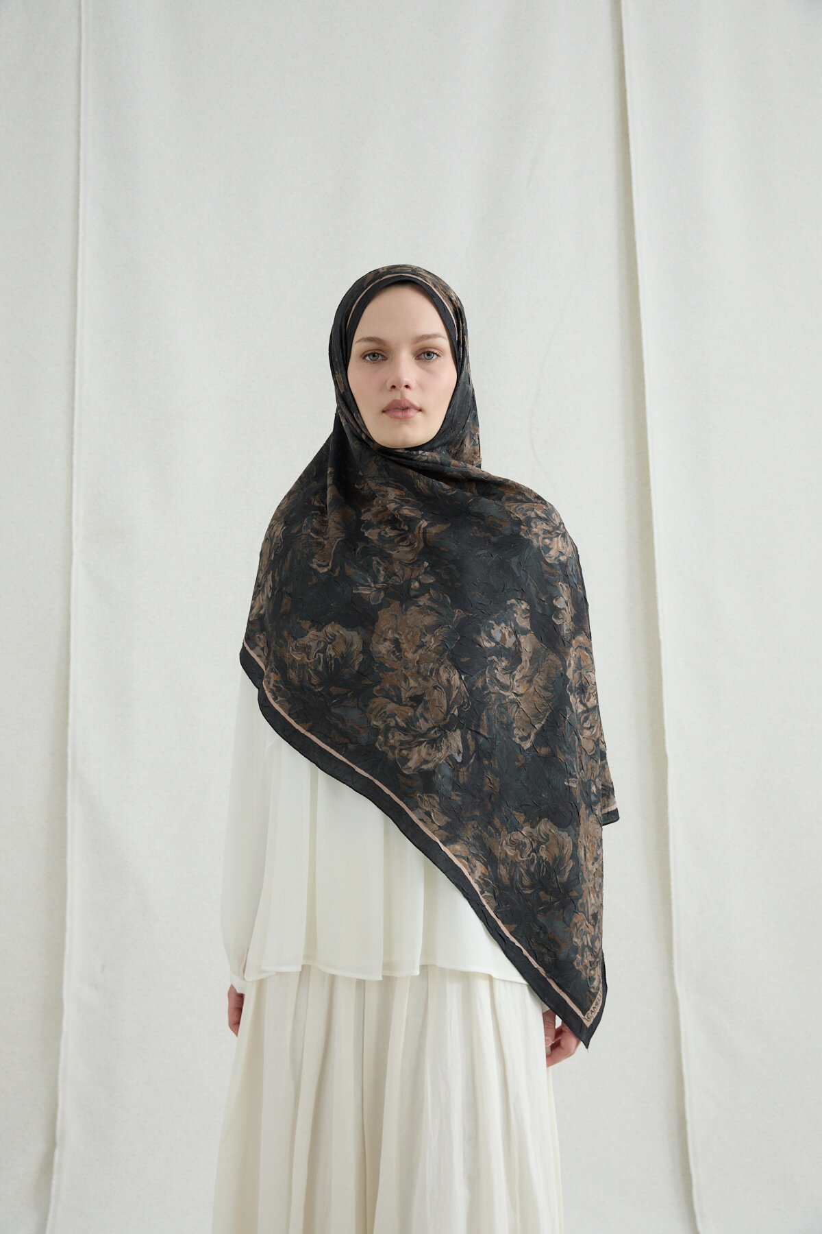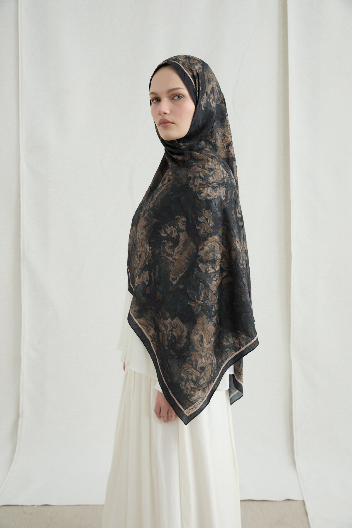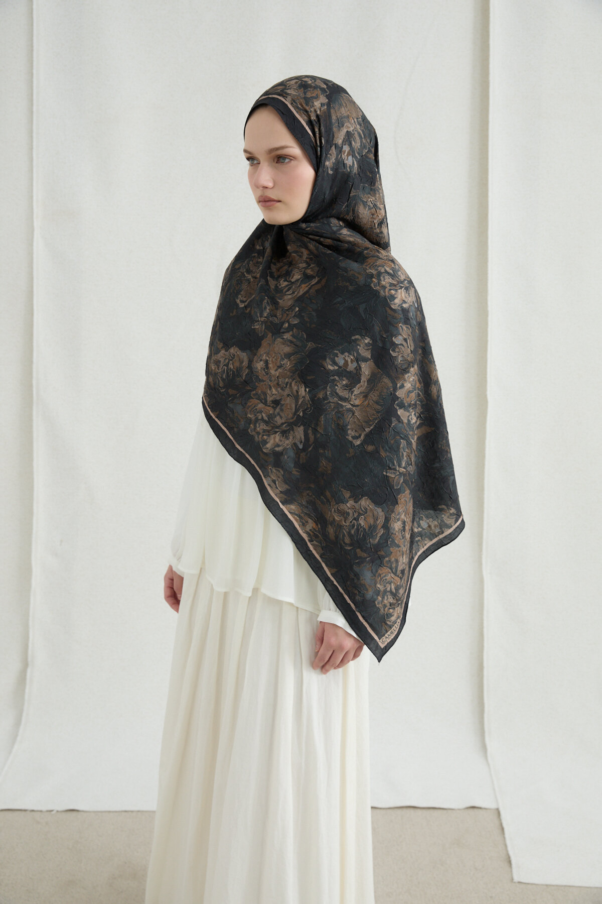 Monaco Kraş Şal - Siyah Bej - Camellia Scarfs Monaco Kraş Şal - Siyah Bej - Camellia Scarfs (1)