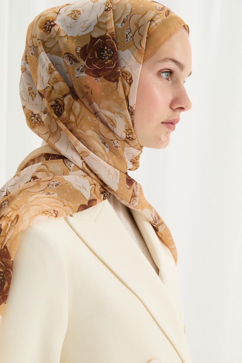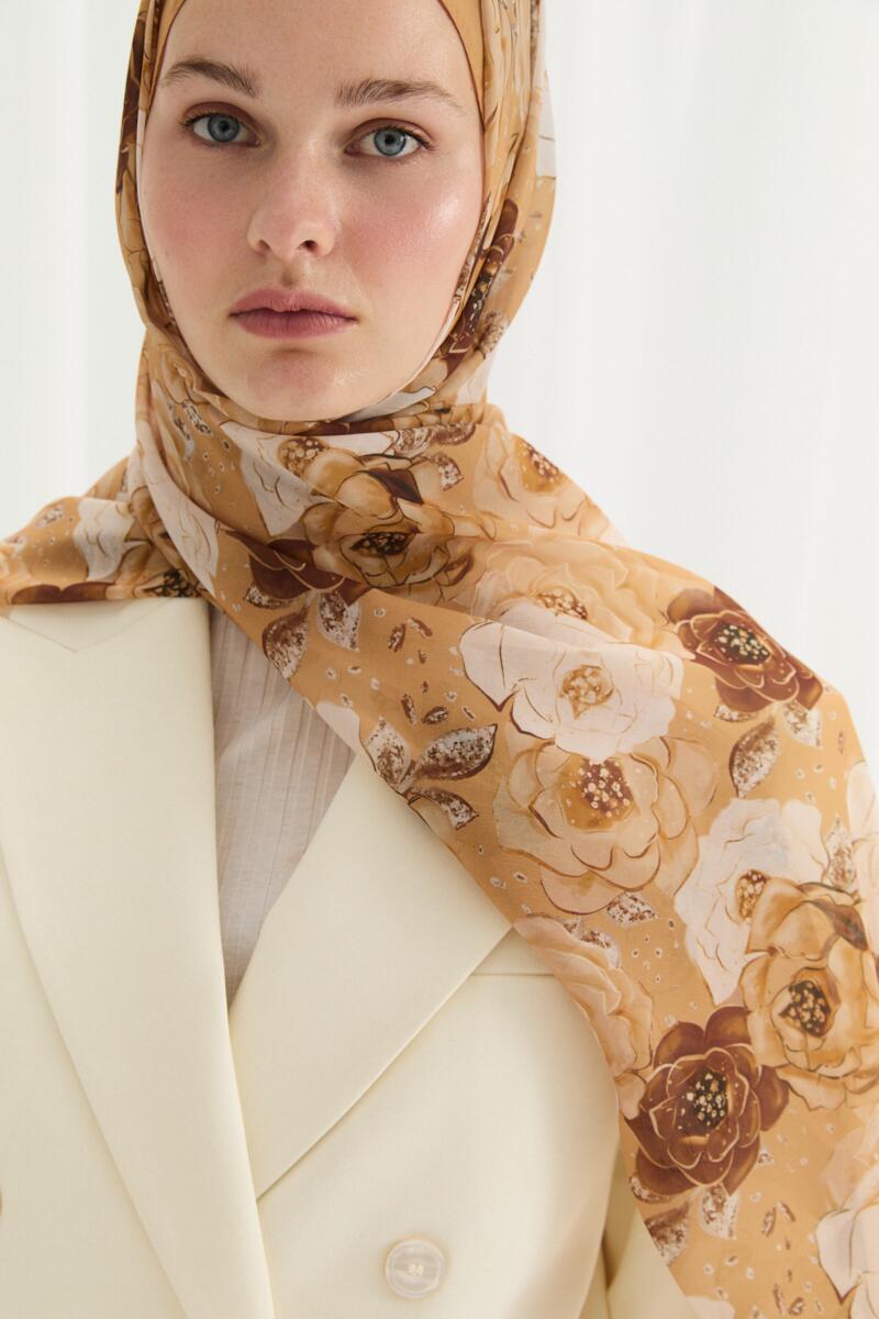 Valeria İpek Krep Şal - Mocha - Camellia Scarfs Valeria İpek Krep Şal - Mocha - Camellia Scarfs (1)