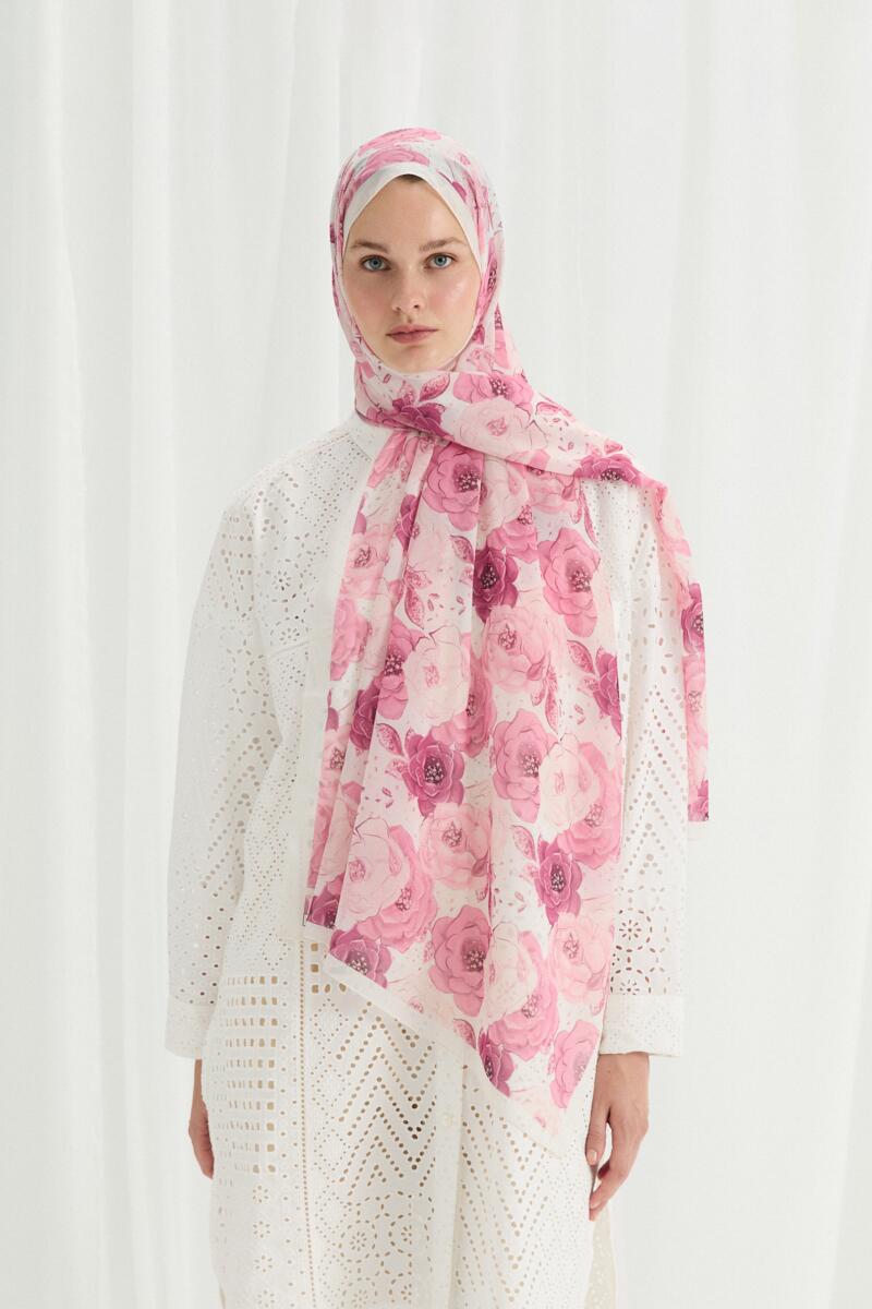 Camellia İpek Krep Şal ile Stilinize estetik bir Camellia imzası bırakın!