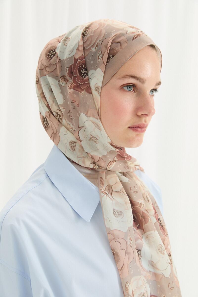 Valeria İpek Krep Şal - Mocha - Camellia Scarfs Valeria İpek Krep Şal - Mocha - Camellia Scarfs (1)