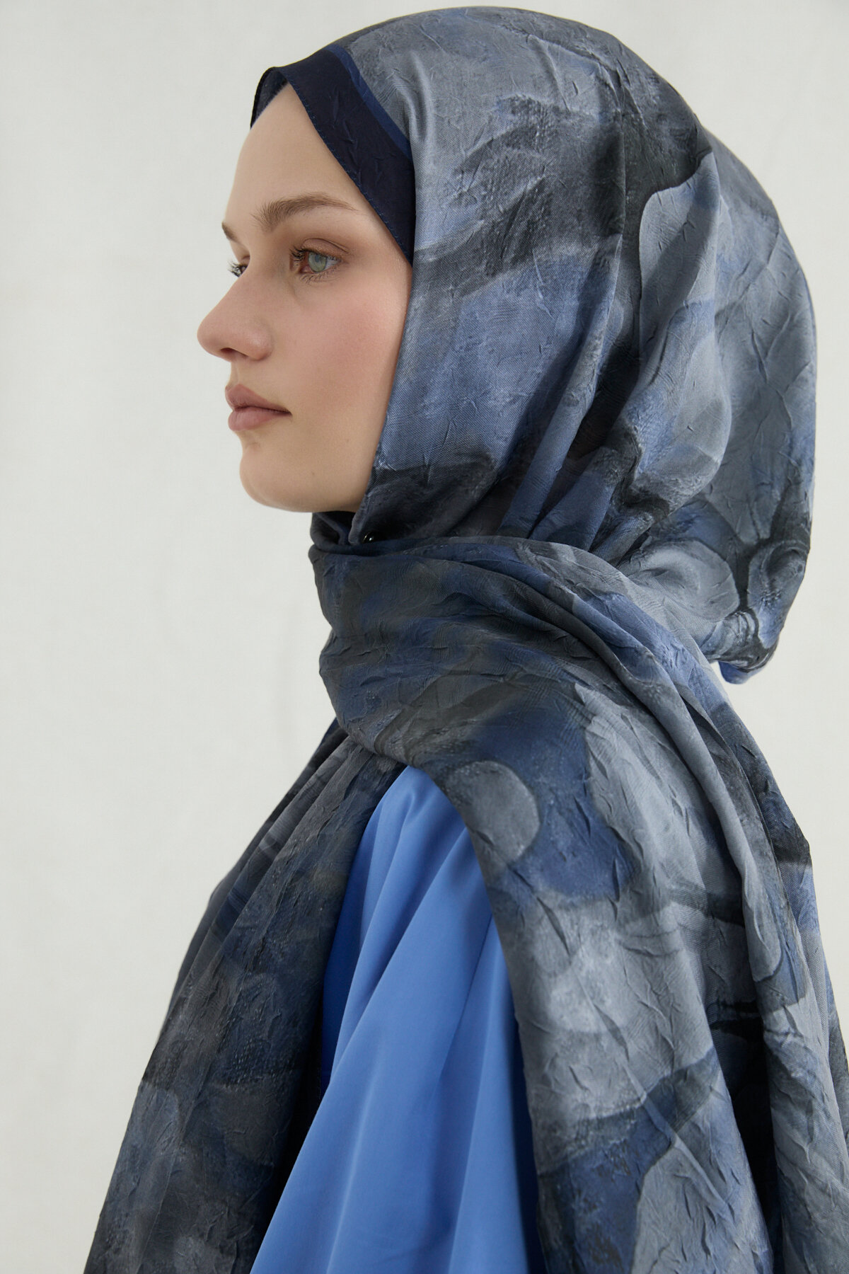 Nars Kraş Şal, Lacivert renginin asaletini kraş dokunun modern ve dinamik yapısıyla birleştiriyor. Kendinden buruşuk özel dokusu sayesinde ekstra hacimli bir görünüm sunan bu model, günün her saatinde formunu koruyan tok duruşuyla stilinize derinlik katar. Kumaş üzerindeki desen yerleşimi, bağlama şekliniz ne olursa olsun görsel bütünlüğü koruyarak her açıdan kusursuz bir şıklık sergilemenize olanak tanır.