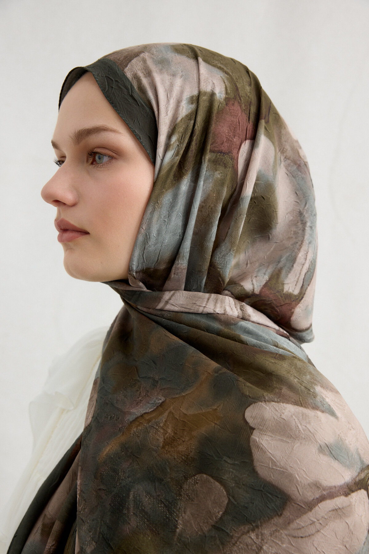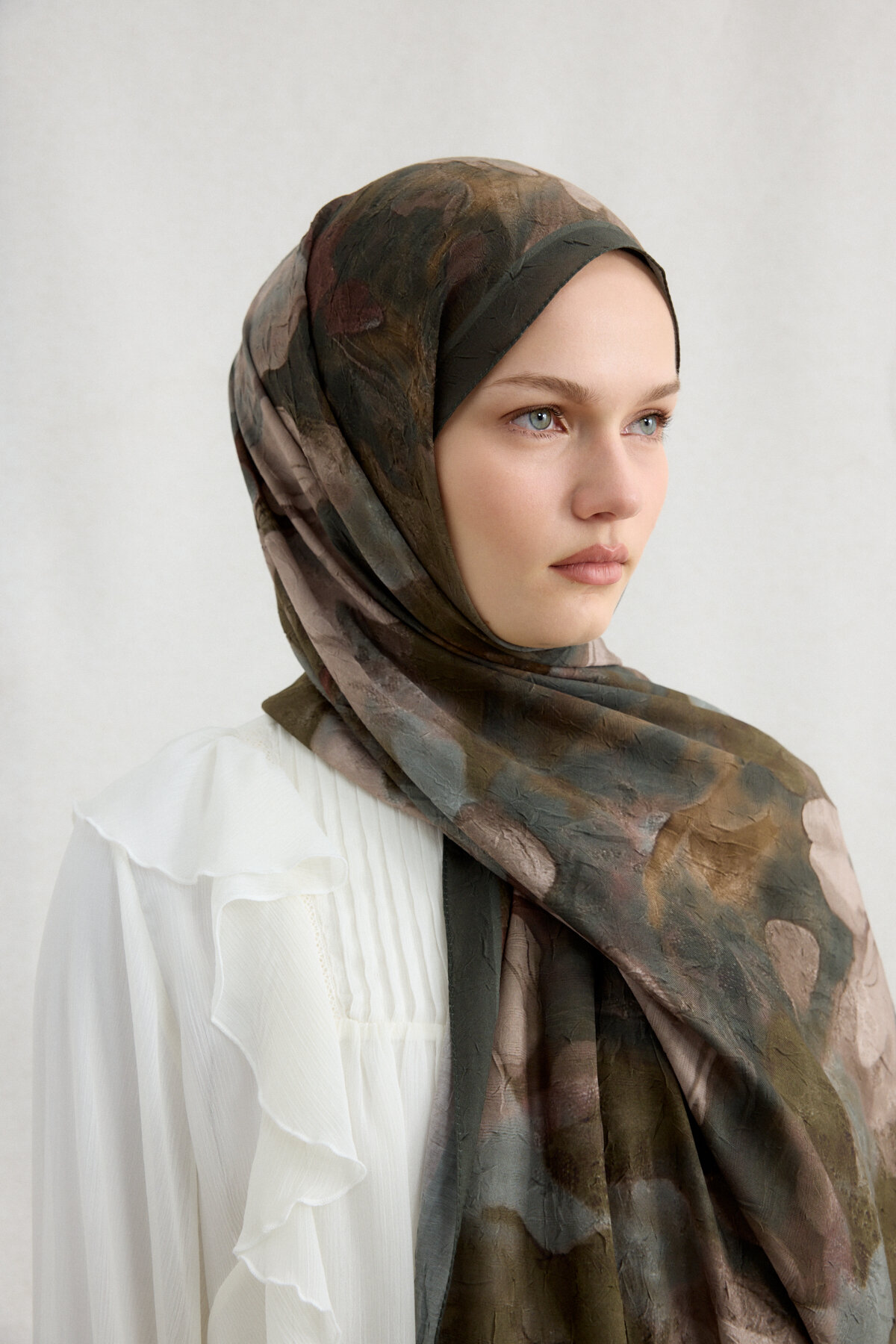 Nars Kraş Şal, Yeşil renginin asaletini kraş dokunun modern ve dinamik yapısıyla birleştiriyor. Kendinden buruşuk özel dokusu sayesinde ekstra hacimli bir görünüm sunan bu model, günün her saatinde formunu koruyan tok duruşuyla stilinize derinlik katar. Kumaş üzerindeki desen yerleşimi, bağlama şekliniz ne olursa olsun görsel bütünlüğü koruyarak her açıdan kusursuz bir şıklık sergilemenize olanak tanır.