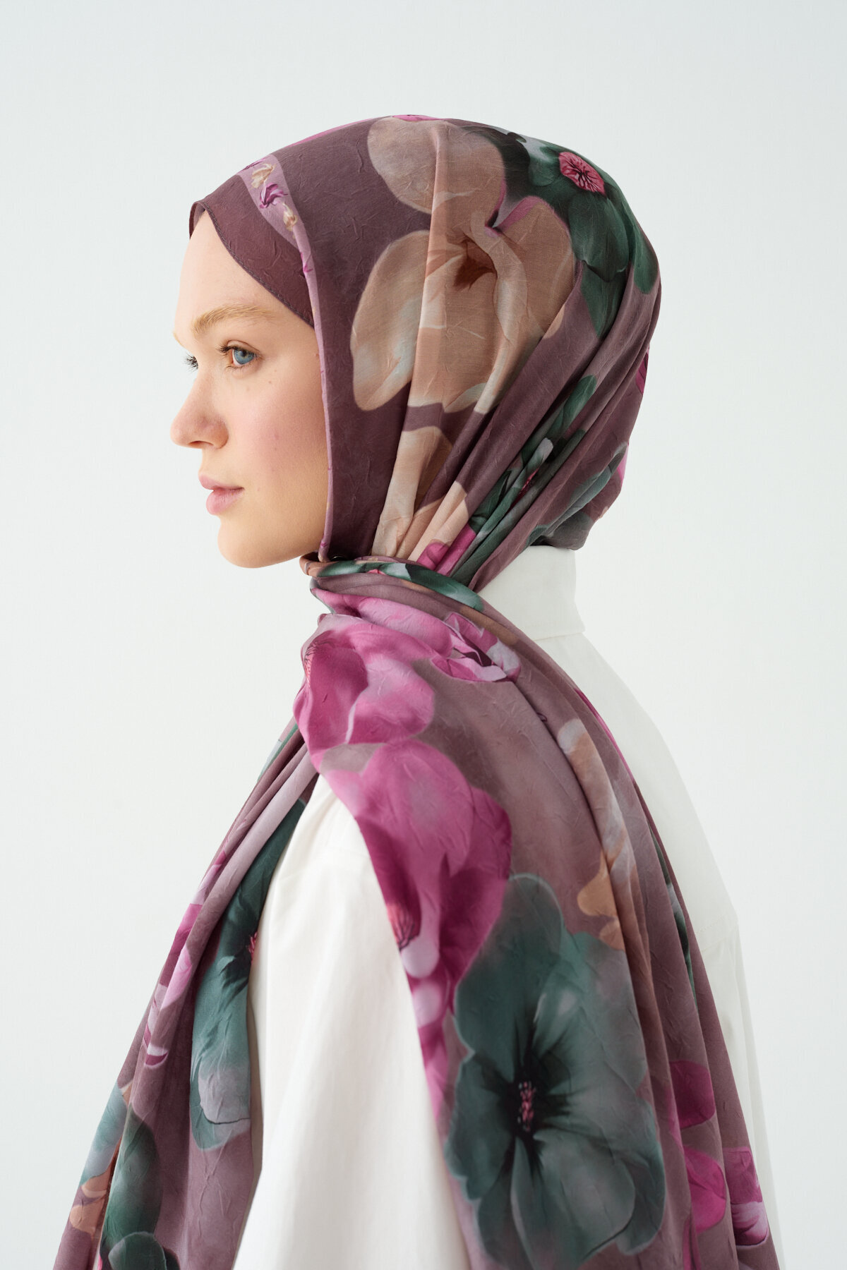 Opera Kraş Şal, İncir renginin huzur veren enerjisini, kraş kumaşın doğal ve modern dokusuyla bir araya getiriyor. Kumaşın kendinden hafif buruşuk yapısı sayesinde hem hacimli hem de tok bir duruş sergileyen bu model, her bağlama stilinde zarafetinizi ön plana çıkarır. Desenlerin kumaş üzerindeki dengeli dağılımı, şalınızı nasıl bağlarsanız bağlayın estetik görünümün korunmasını sağlar.