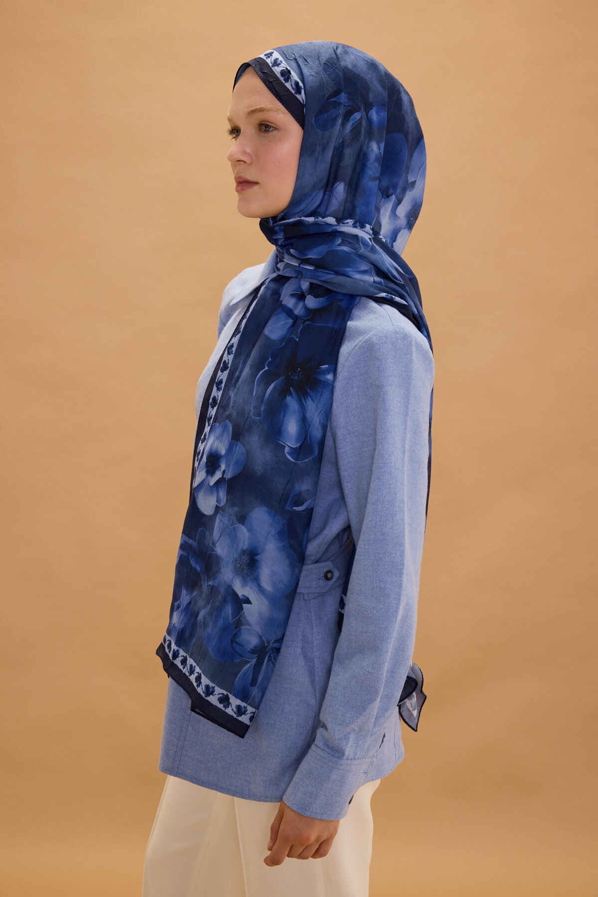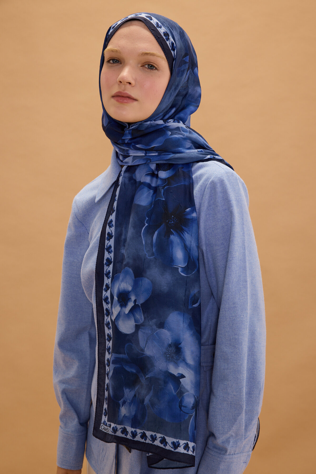 Opera Kraş Şal, Lacivert renginin huzur veren enerjisini, kraş kumaşın doğal ve modern dokusuyla bir araya getiriyor. Kumaşın kendinden hafif buruşuk yapısı sayesinde hem hacimli hem de tok bir duruş sergileyen bu model, her bağlama stilinde zarafetinizi ön plana çıkarır. Desenlerin kumaş üzerindeki dengeli dağılımı, şalınızı nasıl bağlarsanız bağlayın estetik görünümün korunmasını sağlar.