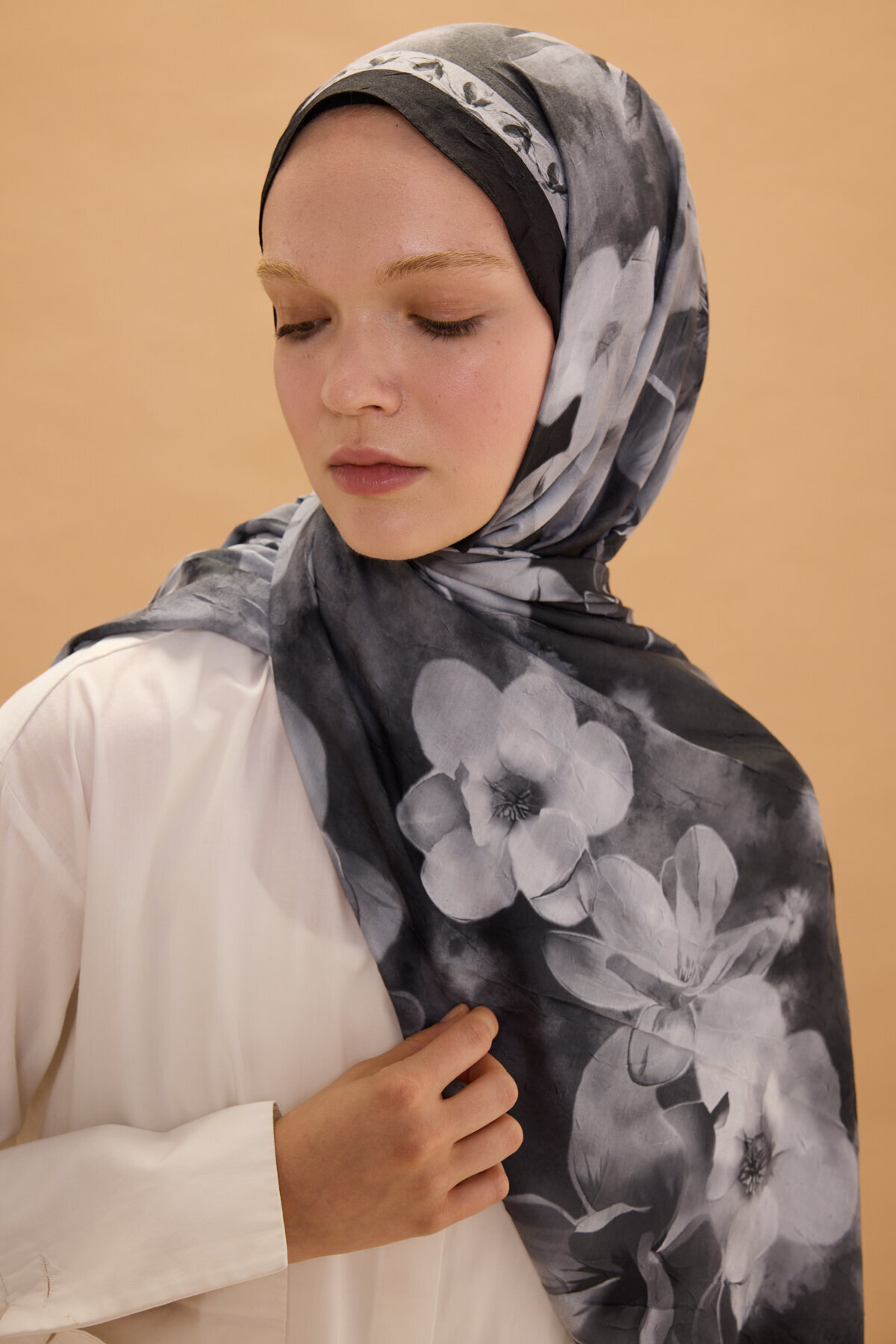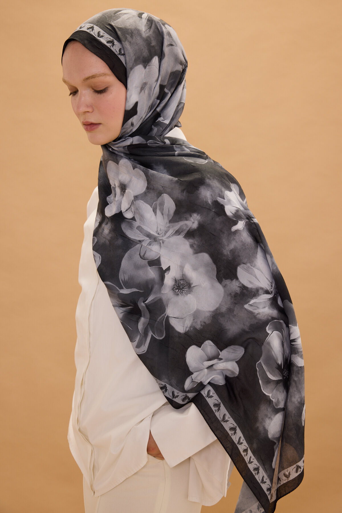 Opera Kraş Şal, Siyah renginin huzur veren enerjisini, kraş kumaşın doğal ve modern dokusuyla bir araya getiriyor. Kumaşın kendinden hafif buruşuk yapısı sayesinde hem hacimli hem de tok bir duruş sergileyen bu model, her bağlama stilinde zarafetinizi ön plana çıkarır. Desenlerin kumaş üzerindeki dengeli dağılımı, şalınızı nasıl bağlarsanız bağlayın estetik görünümün korunmasını sağlar.