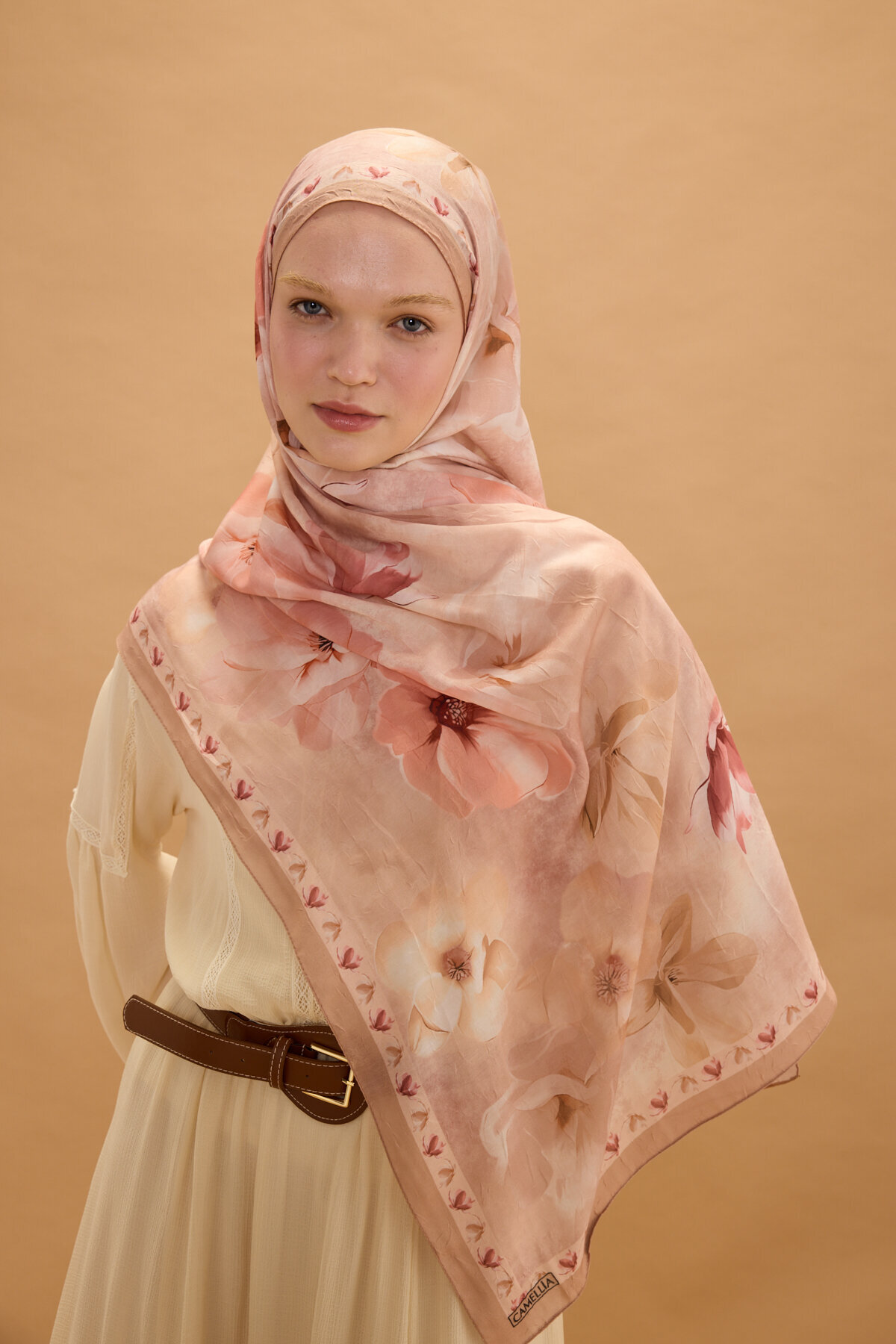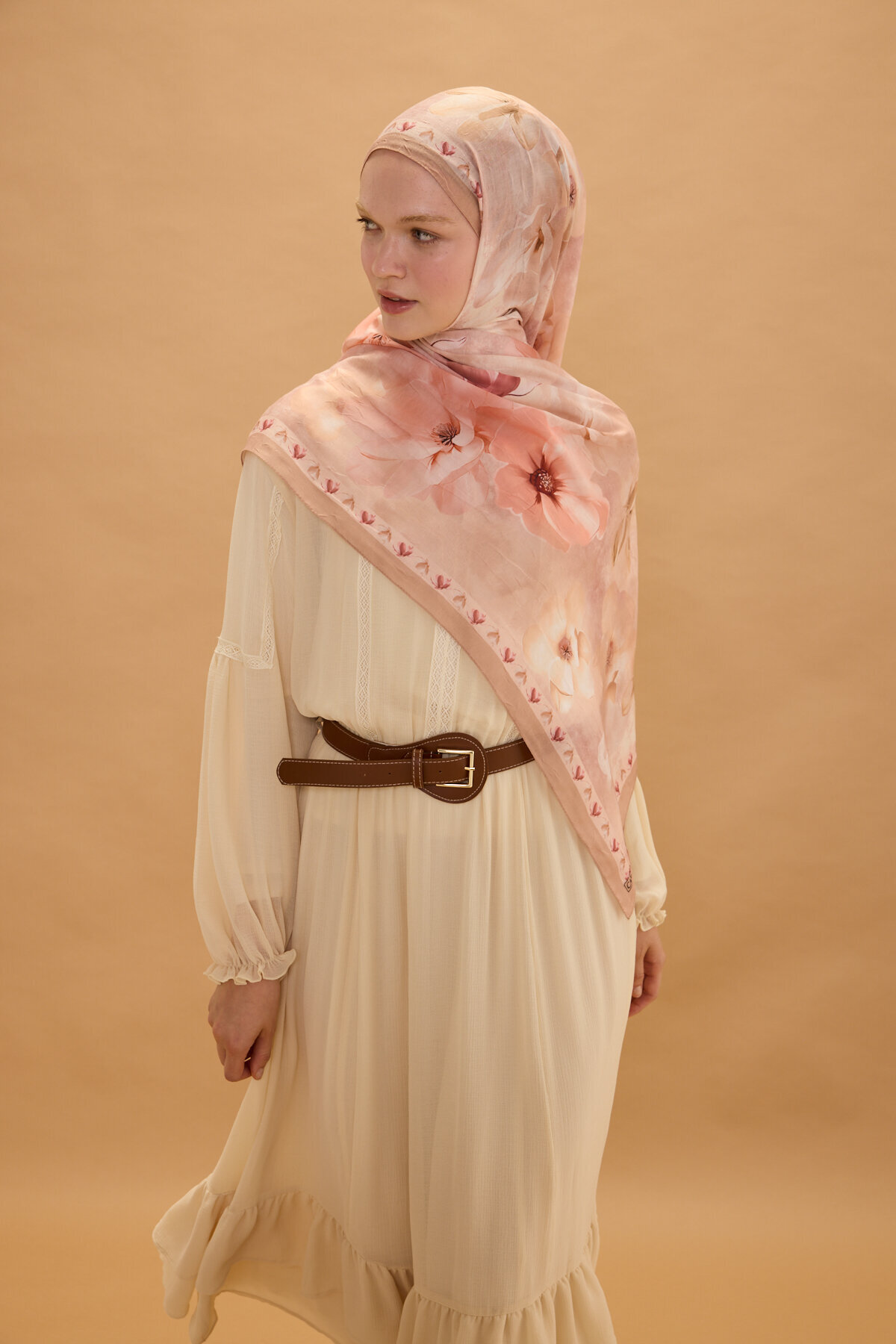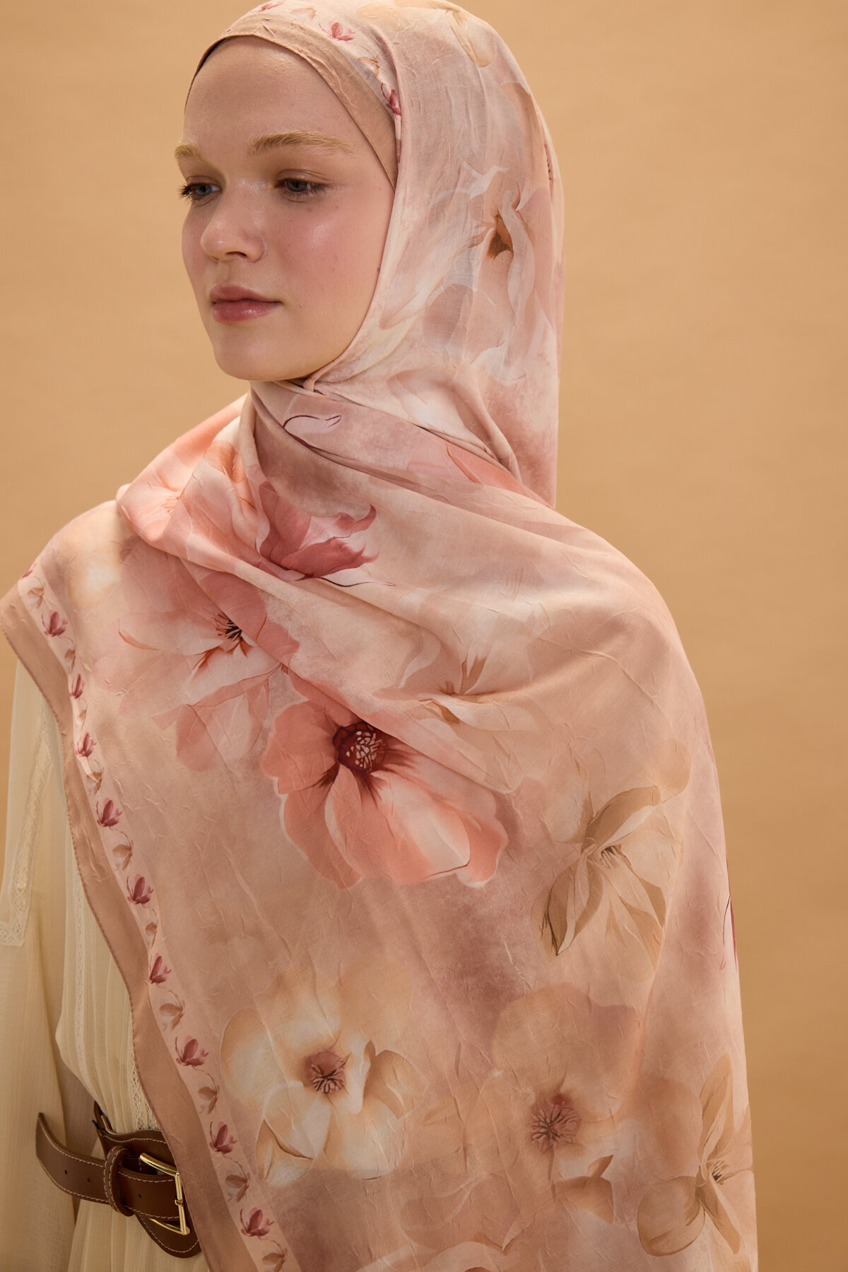 Opera Kraş Şal, Somon renginin huzur veren enerjisini, kraş kumaşın doğal ve modern dokusuyla bir araya getiriyor. Kumaşın kendinden hafif buruşuk yapısı sayesinde hem hacimli hem de tok bir duruş sergileyen bu model, her bağlama stilinde zarafetinizi ön plana çıkarır. Desenlerin kumaş üzerindeki dengeli dağılımı, şalınızı nasıl bağlarsanız bağlayın estetik görünümün korunmasını sağlar.
