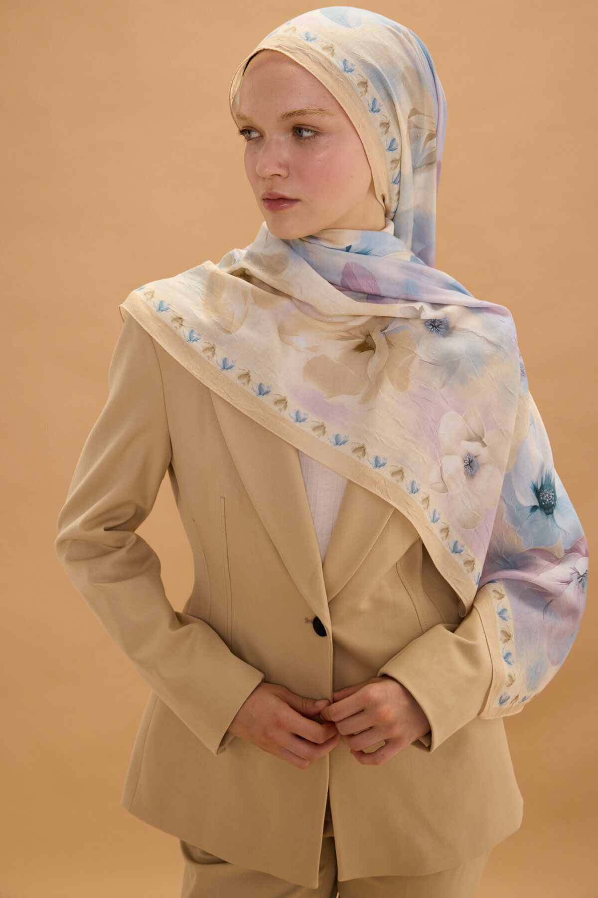 Opera Kraş Şal, Tereyağ Sarısı renginin huzur veren enerjisini, kraş kumaşın doğal ve modern dokusuyla bir araya getiriyor. Kumaşın kendinden hafif buruşuk yapısı sayesinde hem hacimli hem de tok bir duruş sergileyen bu model, her bağlama stilinde zarafetinizi ön plana çıkarır. Desenlerin kumaş üzerindeki dengeli dağılımı, şalınızı nasıl bağlarsanız bağlayın estetik görünümün korunmasını sağlar.
