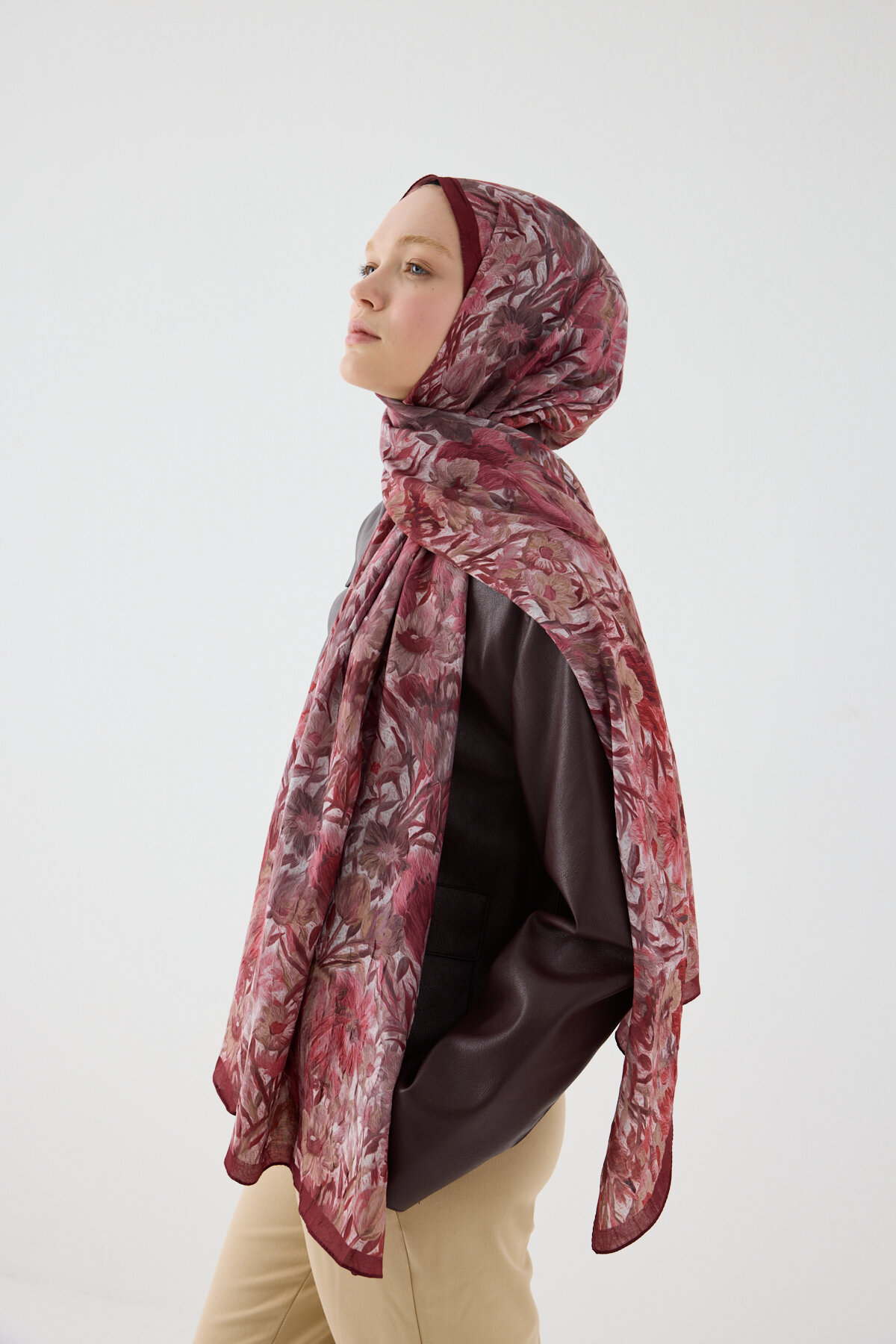 Lotus Desen Soft Şal - Cherry - Camellia Scarfs Lotus Desen Soft Şal - Cherry - Camellia Scarfs (1)