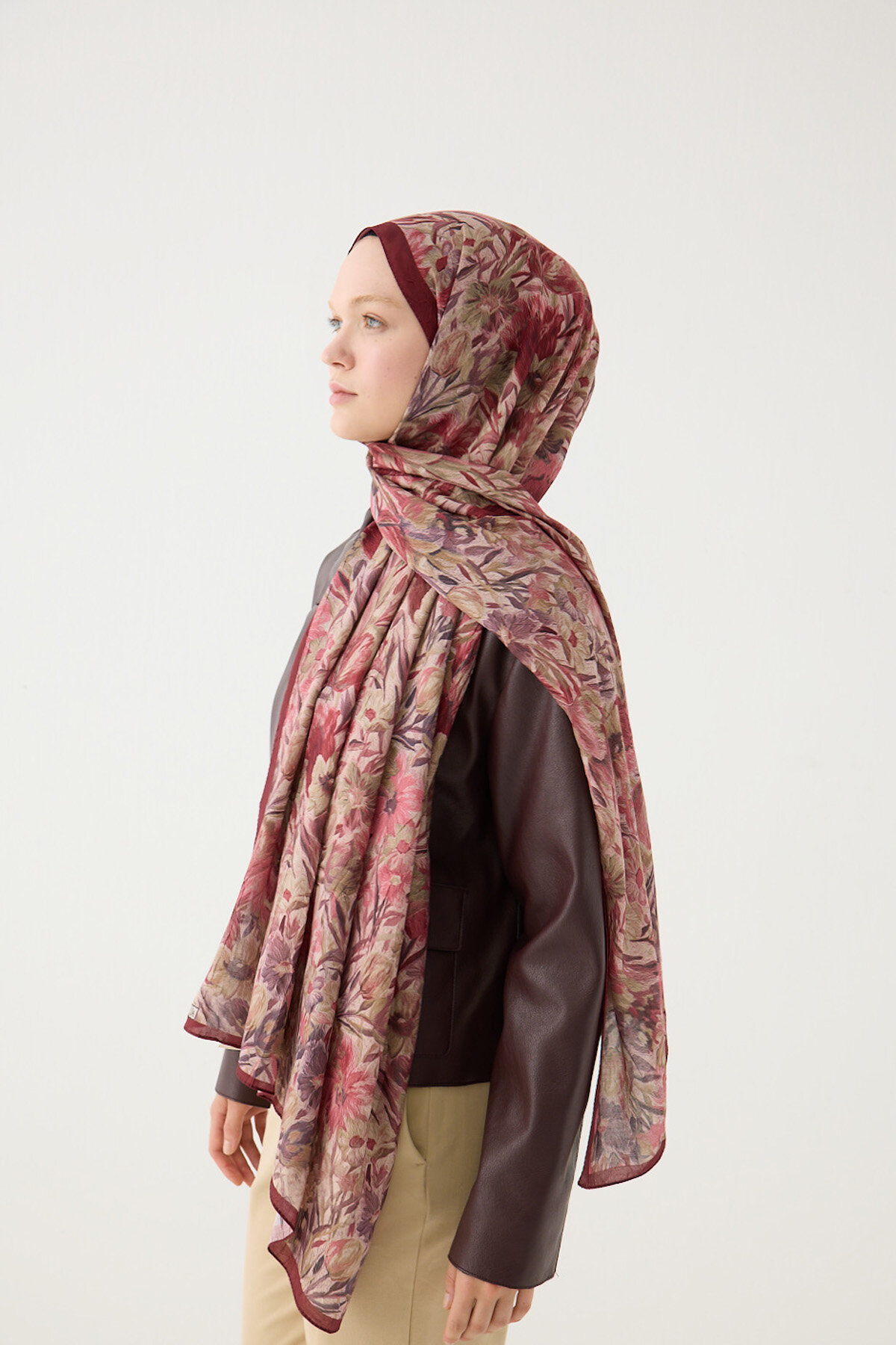Lotus Desen Soft Şal - Cherry - Camellia Scarfs Lotus Desen Soft Şal - Cherry - Camellia Scarfs (1)