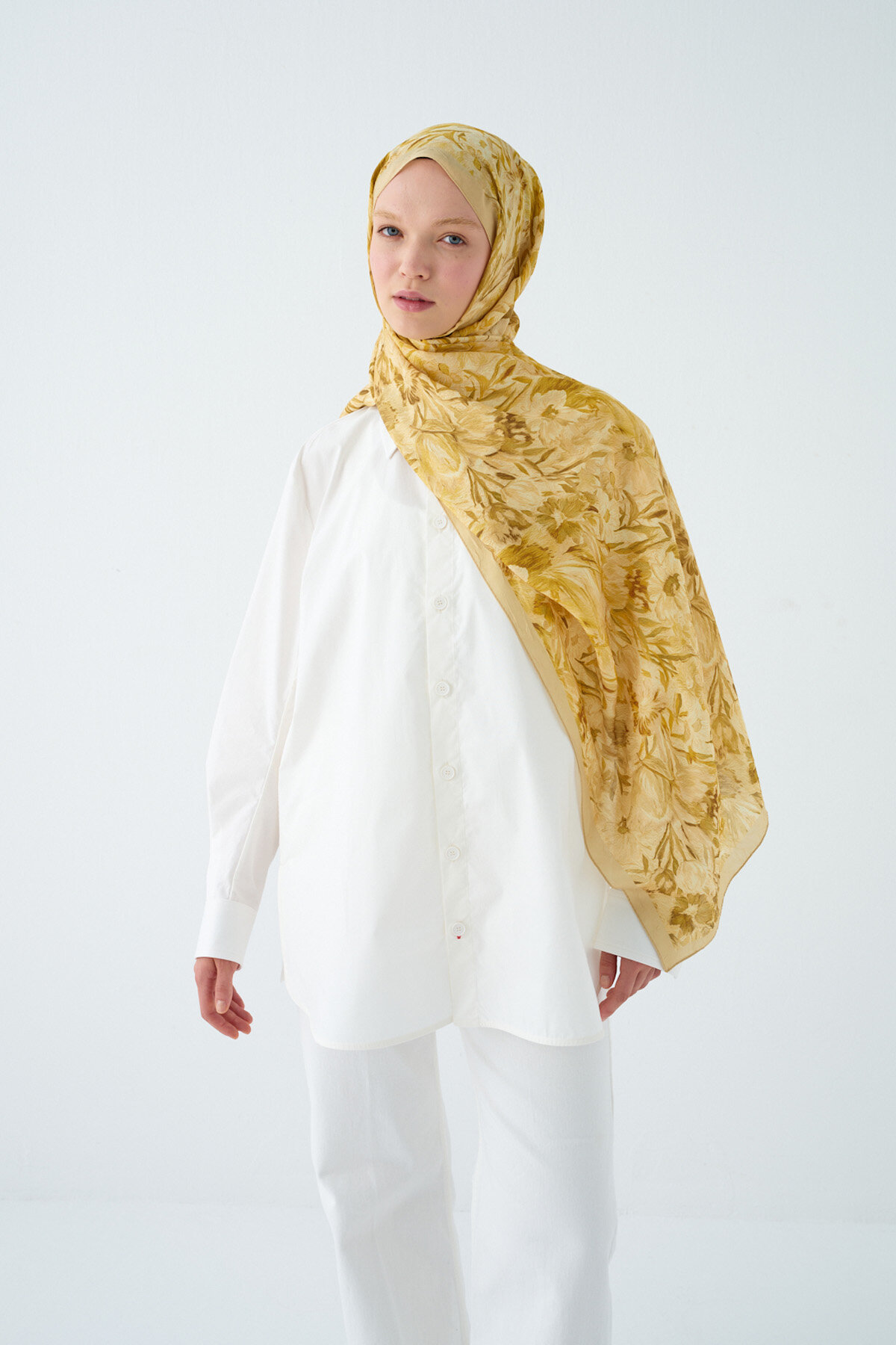 Sera Desen Kraş Şal - Tereyağ Sarısı - Camellia Scarfs Sera Desen Kraş Şal - Tereyağ Sarısı - Camellia Scarfs (1)