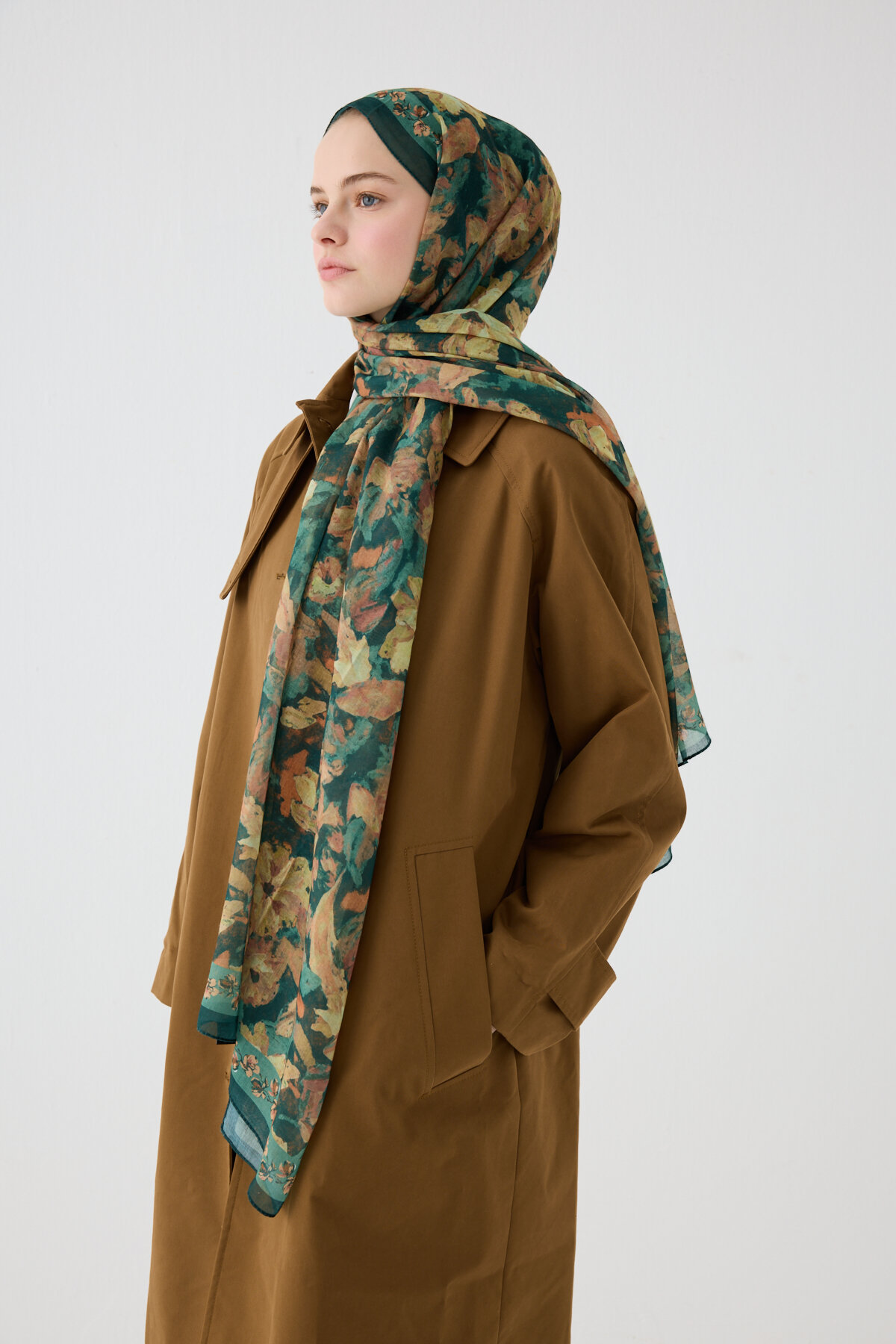 Petra Soft Pamuk Şal, Zümrüt Yeşili renginin estetiğini ve Soft Pamuk kumaşın karakteristik mat dokusunu modern bir çizgide buluşturuyor. Viskon ve Soft Pamuk karışımının sunduğu doğal yapı, şala hem tok bir duruş hem de gün boyu süren bir hafiflik kazandırır. Her türlü bağlama stilinde formunu koruyan bu model, günlük yaşamdan klasik kombinlere kadar geniş bir yelpazede zahmetsiz şıklık sunmak için tasarlandı.