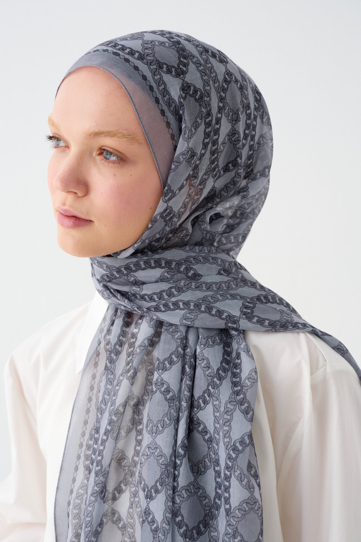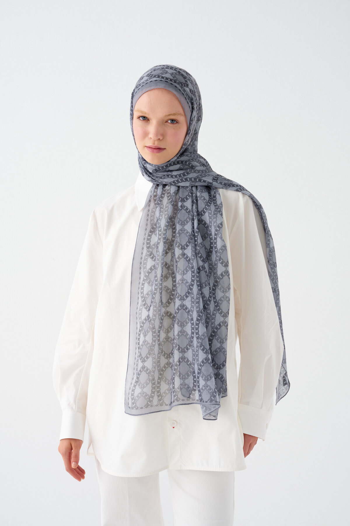 Prag Soft Pamuk Şal, Gri renginin estetiğini ve Soft Pamuk kumaşın karakteristik mat dokusunu zarif bir çizgide buluşturuyor. Viskon ve Soft Pamuk karışımının sunduğu doğal yapı, şala hem tok bir duruş hem de gün boyu süren bir hafiflik kazandırır. Her türlü bağlama stilinde formunu koruyan bu model, modern kadının hem günlük hem de klasik gardırobuna kusursuz bir uyum sağlamak için tasarlandı.