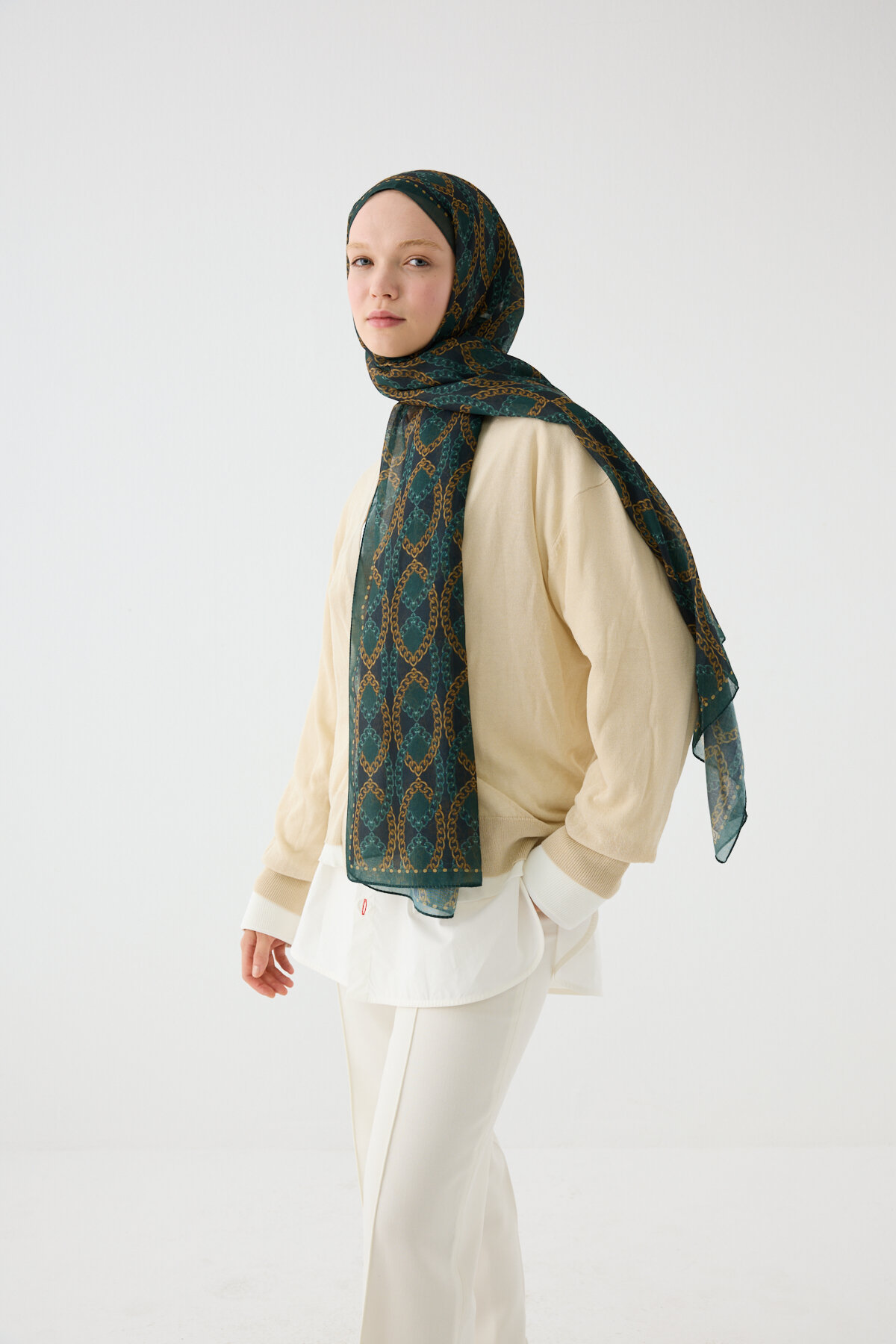 Prag Soft Pamuk Şal, Zümrüt Yeşili renginin estetiğini ve Soft Pamuk kumaşın karakteristik mat dokusunu zarif bir çizgide buluşturuyor. Viskon ve Soft Pamuk karışımının sunduğu doğal yapı, şala hem tok bir duruş hem de gün boyu süren bir hafiflik kazandırır. Her türlü bağlama stilinde formunu koruyan bu model, modern kadının hem günlük hem de klasik gardırobuna kusursuz bir uyum sağlamak için tasarlandı.