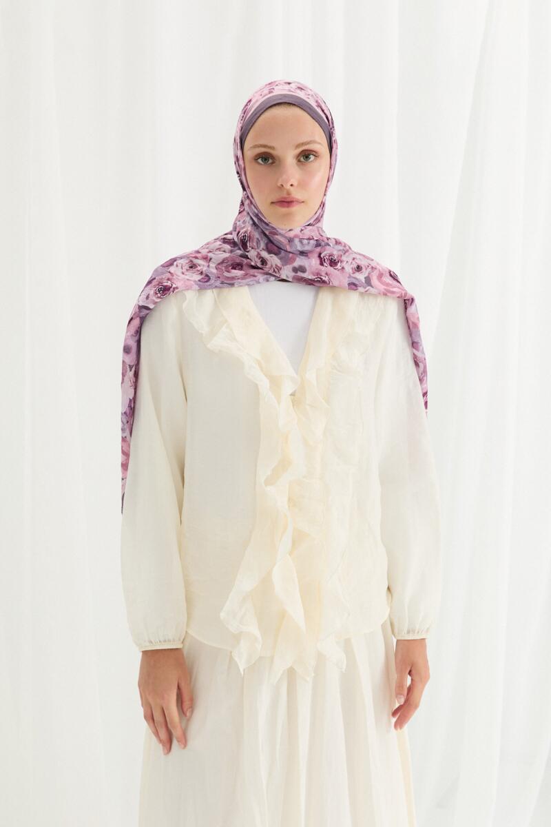 ROSEMARY KRAŞ ŞAL ile farkını öne çıkar. Kraş dokusu ve gül desenlerini ön planda tutan bu özel tasarım. Tarzınıza ütü istemeyen kraş rahatlığı sunar.
