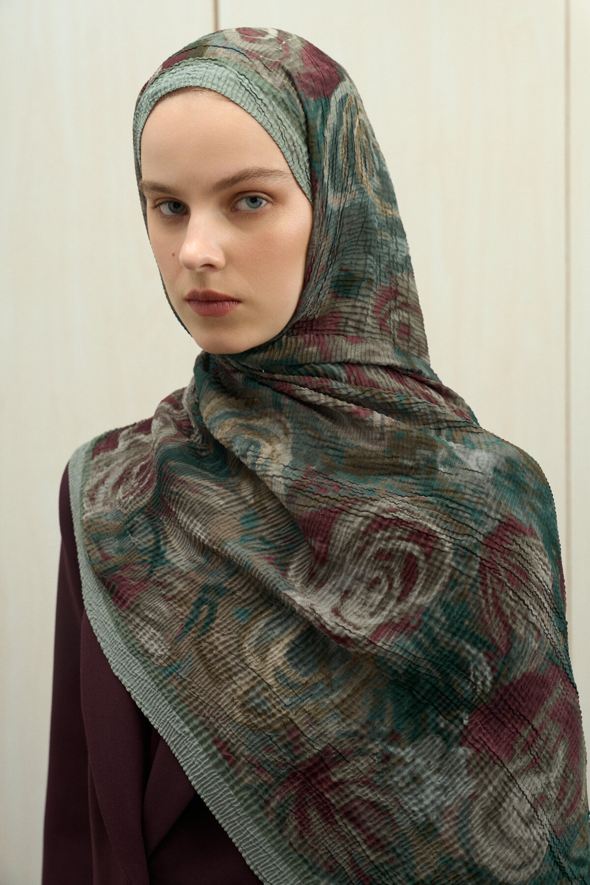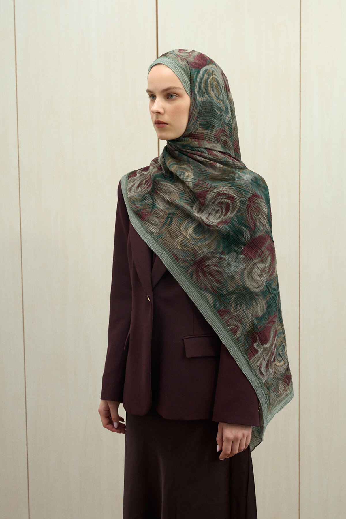 Kumaş Özellikleri: Müslin kumaş Boyut: 83 cm x 190 cm "Kırışıklık nedeniyle ölçülerde farklılık olabilir" Avantajlar: Hafif ve nefes alabilen yapısıyla kolay şekil alır, gün boyunca kayma yapmaz. Yumuşak dokusu cildinize nazikçe temas eder ve her mevsim konforlu bir kullanım sunar.