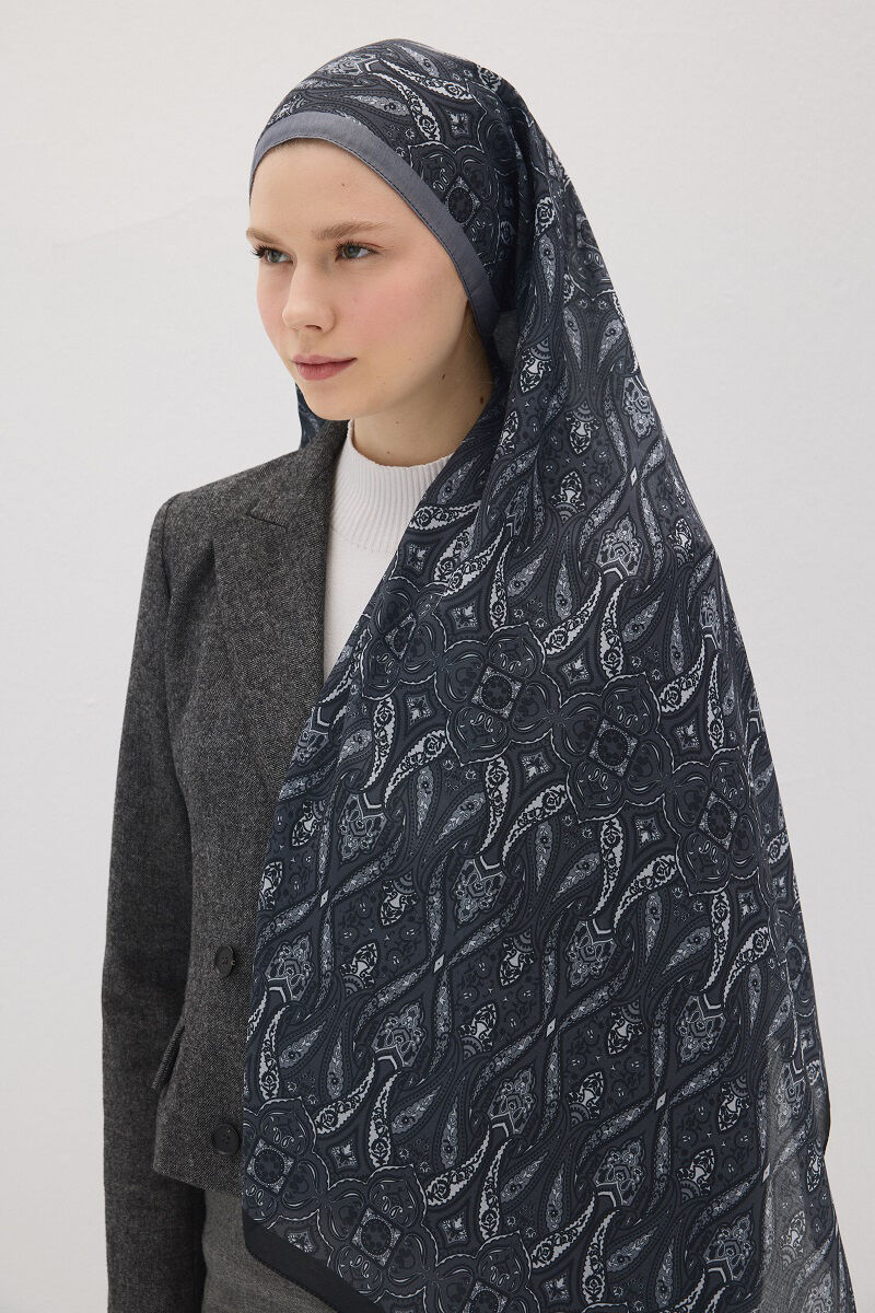 Lotus Desen Soft Şal - Lacivert - Camellia Scarfs Lotus Desen Soft Şal - Lacivert - Camellia Scarfs (1)
