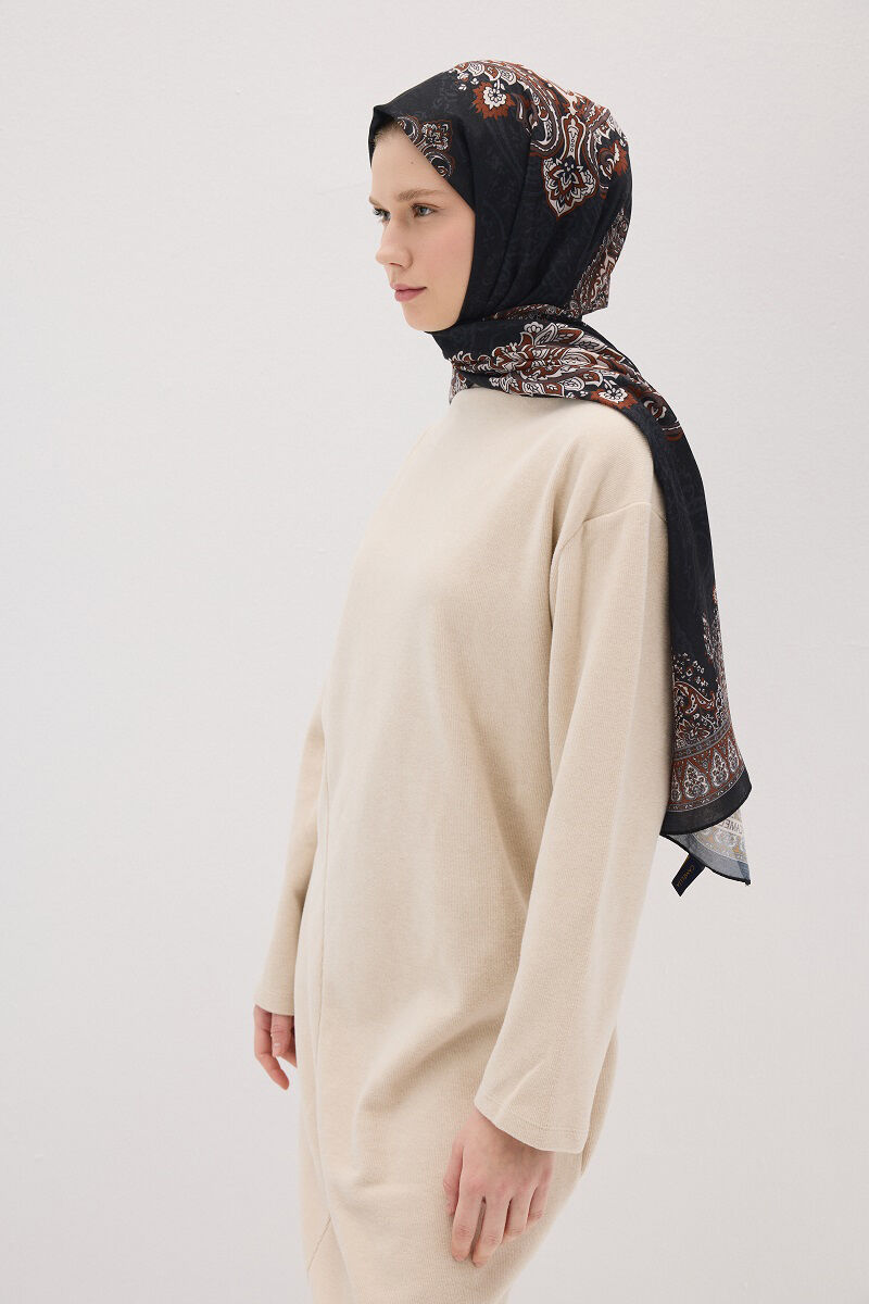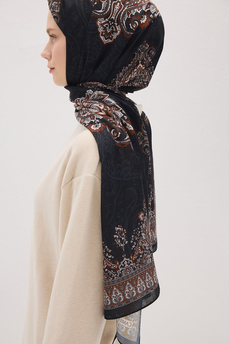 Lotus Desen Soft Şal - Siyah / Bej - Camellia Scarfs Lotus Desen Soft Şal - Siyah / Bej - Camellia Scarfs (1)