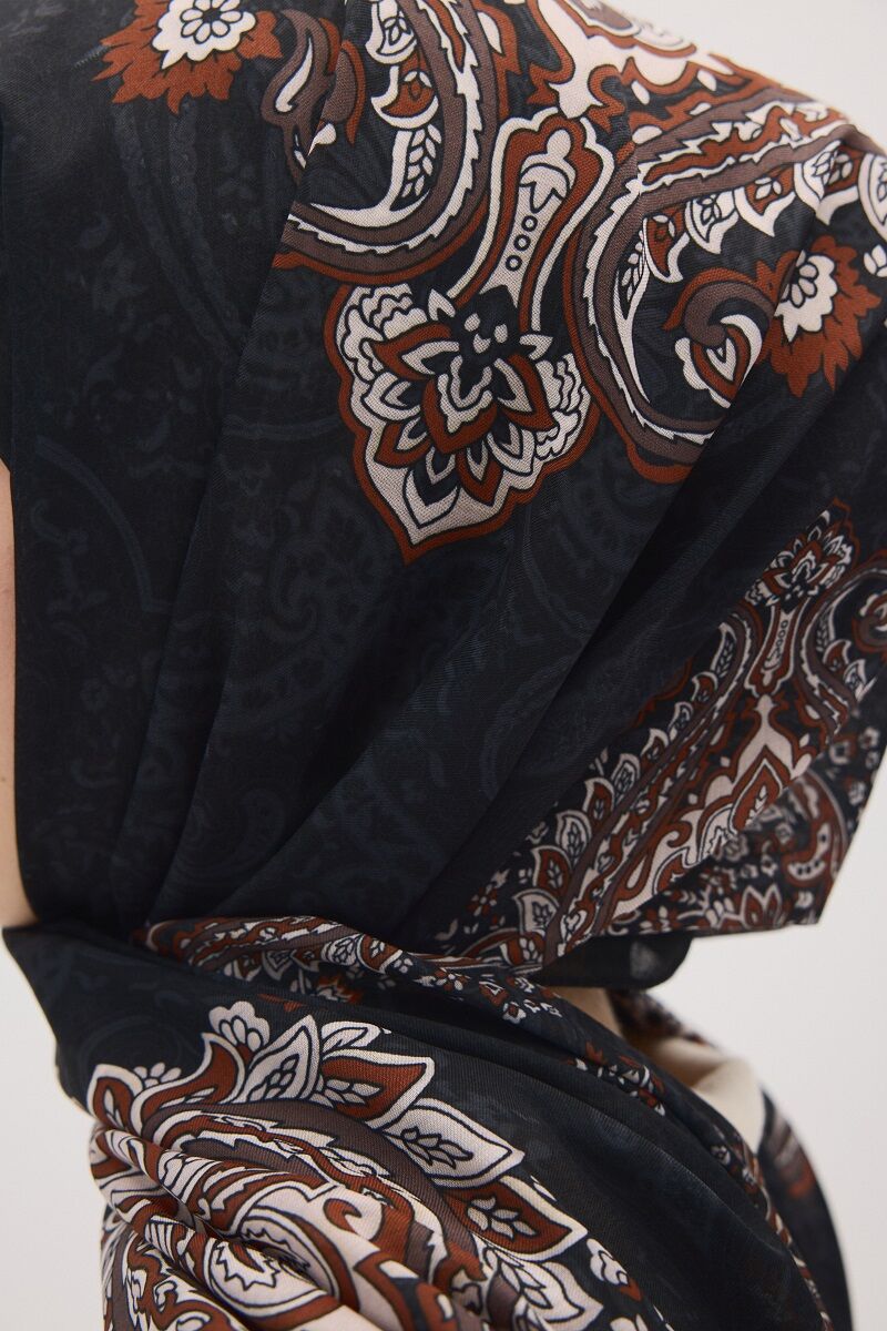 Lotus Desen Soft Şal - Koyu Kahve - Camellia Scarfs Lotus Desen Soft Şal - Koyu Kahve - Camellia Scarfs (1)