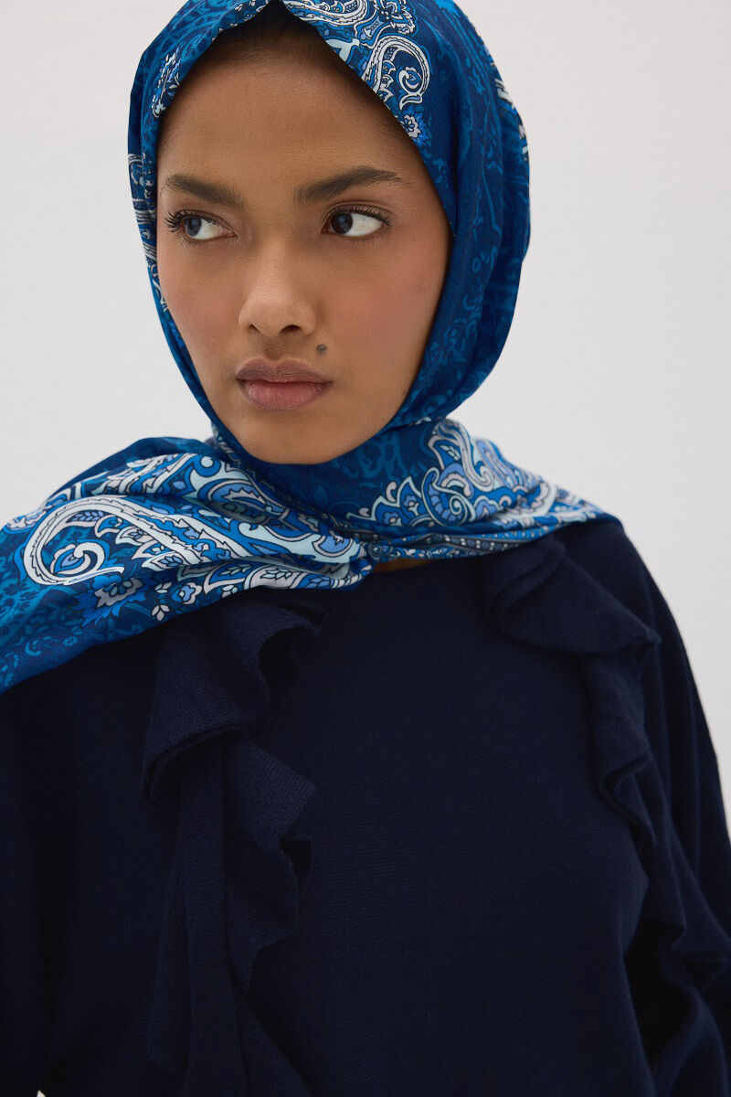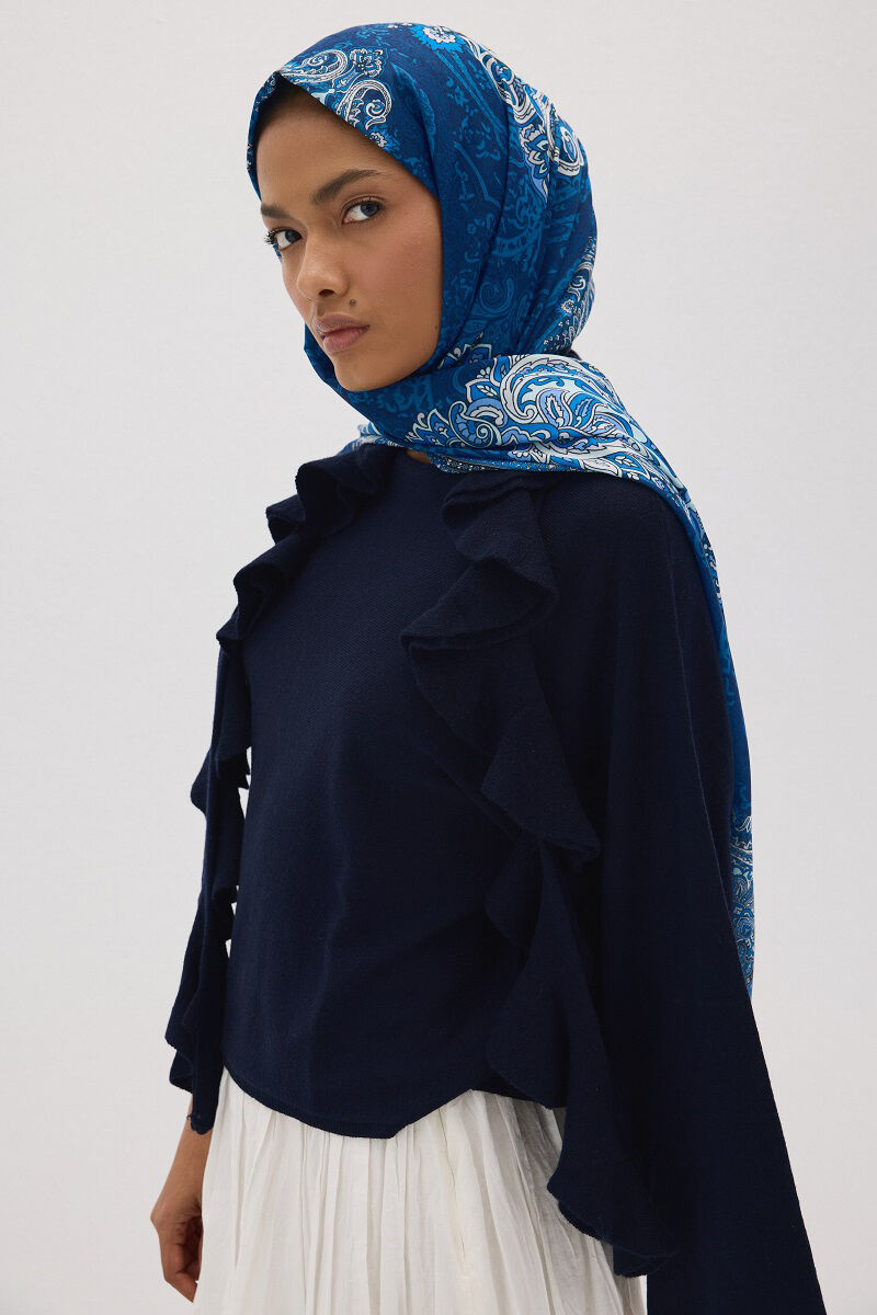 Lotus Desen Soft Şal - Lacivert - Camellia Scarfs Lotus Desen Soft Şal - Lacivert - Camellia Scarfs (1)