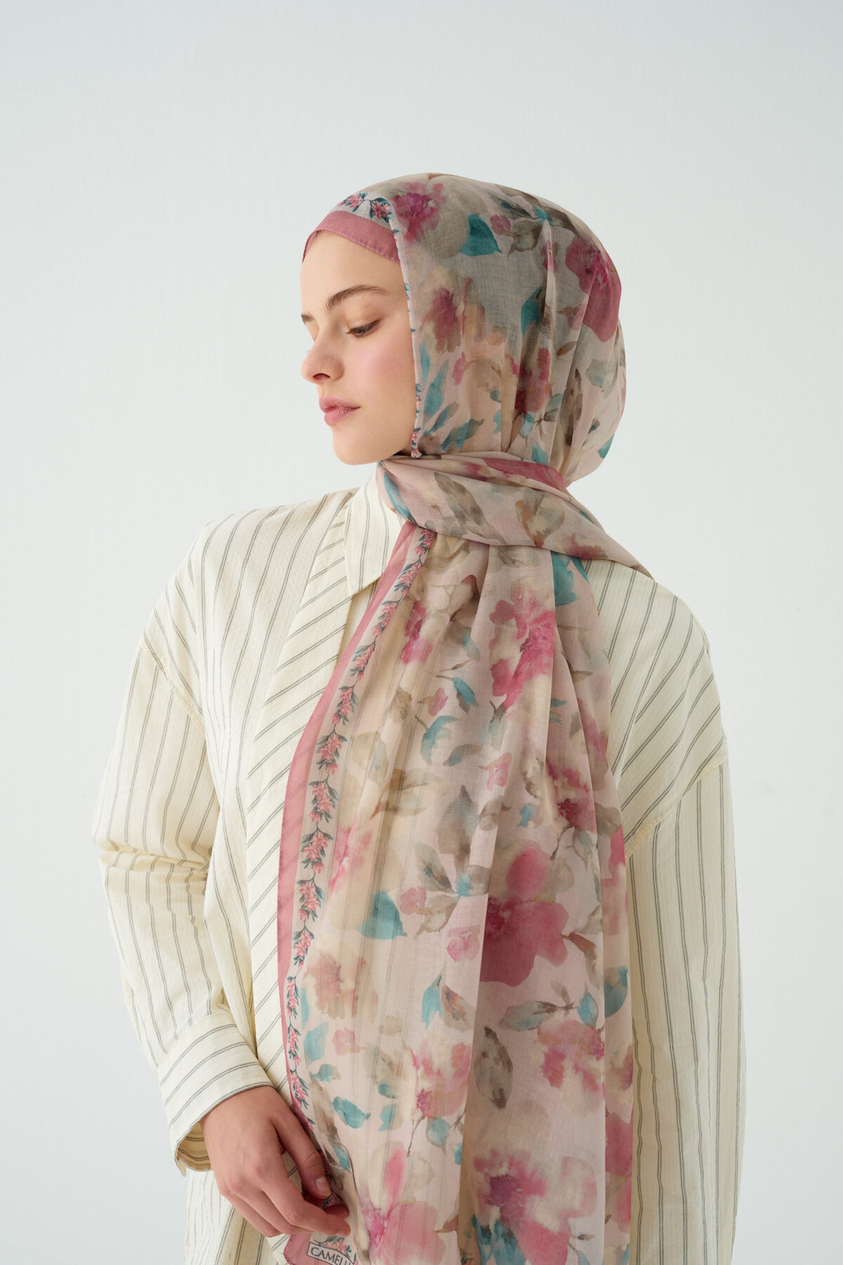 Tokyo Soft Pamuk Şal, Pudra renginin estetiğini ve Soft Pamuk kumaşın karakteristik mat dokusunu modern bir çizgide buluşturuyor. Viskon ve Soft Pamuk karışımının sunduğu doğal yapı, şala hem tok bir duruş hem de gün boyu süren bir hafiflik kazandırır. Her türlü bağlama stilinde formunu koruyan bu model, günlük yaşamdan klasik kombinlere kadar geniş bir yelpazede zahmetsiz şıklık sunmak için tasarlandı.