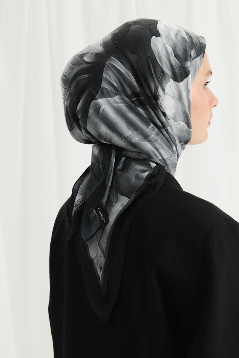 Lotus Desen Soft Eşarp - Siyah - Camellia Scarfs Lotus Desen Soft Eşarp - Siyah - Camellia Scarfs (1)