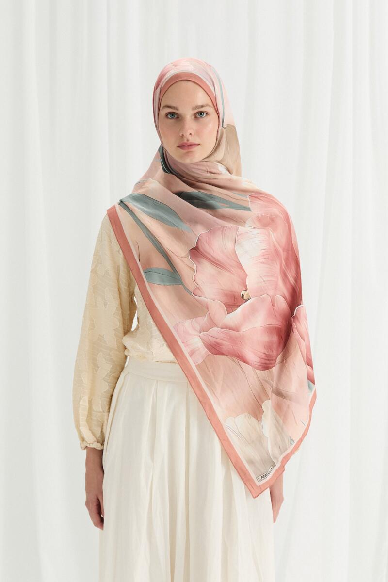 Tulipano Kraş Şal - Pudra - Camellia Scarfs Tulipano Kraş Şal - Pudra - Camellia Scarfs (1)