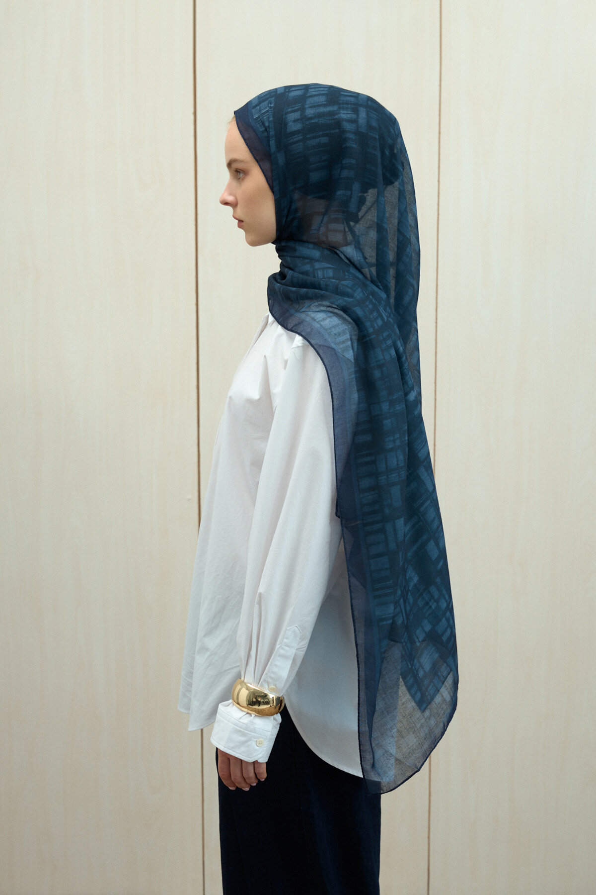 Valentina Soft Pamuk Şal, Lacivert renginin estetiğini ve Soft Pamuk kumaşın karakteristik mat dokusunu zarif bir çizgide buluşturuyor. Viskon ve Soft Pamuk karışımının sunduğu doğal yapı, şala hem tok bir duruş hem de gün boyu süren bir hafiflik kazandırır. Her türlü bağlama stilinde formunu koruyan bu model, modern kadının hem günlük hem de klasik gardırobuna kusursuz bir uyum sağlamak için tasarlandı.
