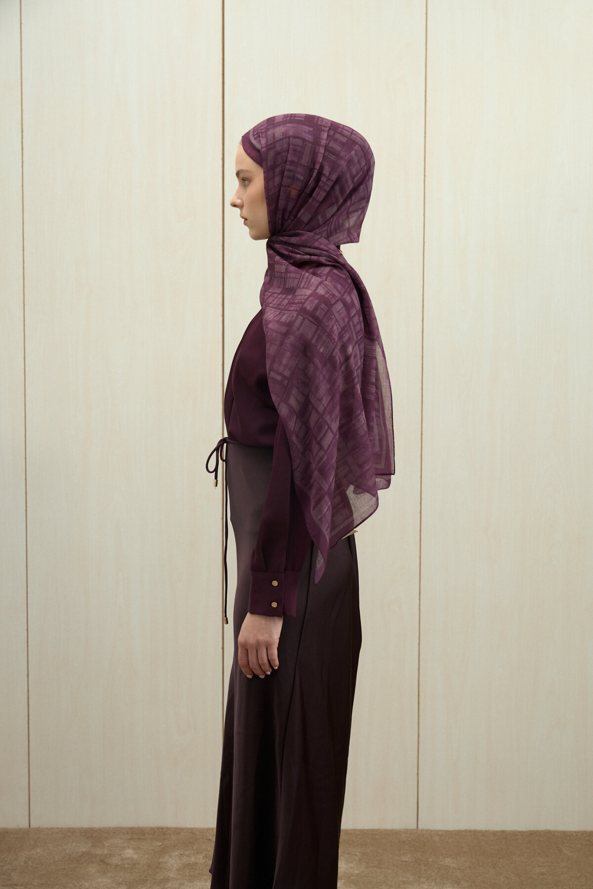 Valentina Soft Pamuk Şal, Mürdüm renginin estetiğini ve Soft Pamuk kumaşın karakteristik mat dokusunu zarif bir çizgide buluşturuyor. Viskon ve Soft Pamuk karışımının sunduğu doğal yapı, şala hem tok bir duruş hem de gün boyu süren bir hafiflik kazandırır. Her türlü bağlama stilinde formunu koruyan bu model, modern kadının hem günlük hem de klasik gardırobuna kusursuz bir uyum sağlamak için tasarlandı.