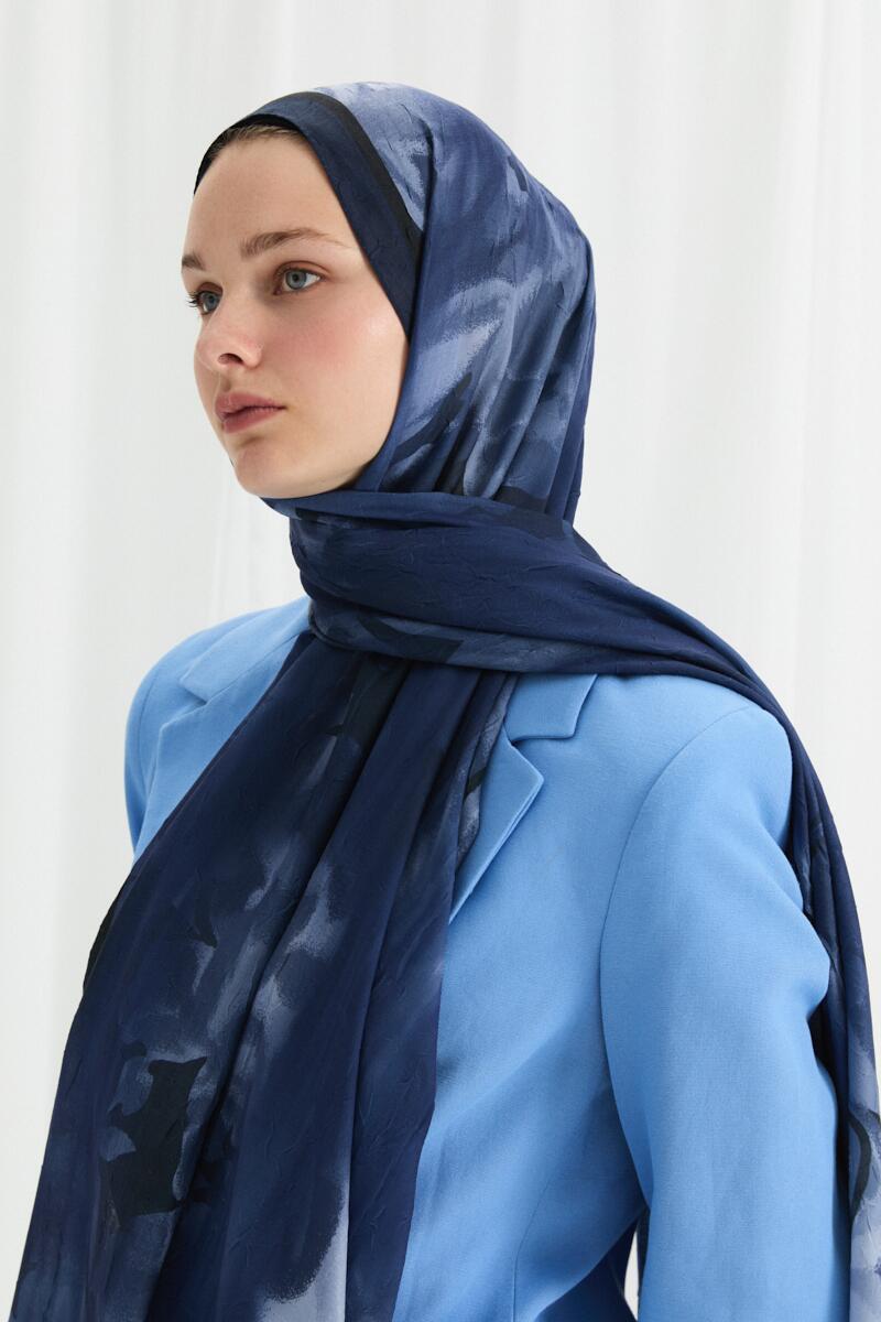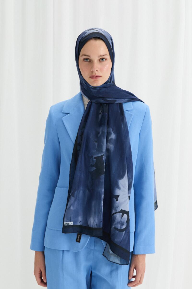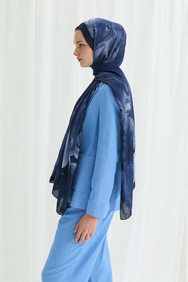 Lotus Desen Soft Şal - Lacivert - Camellia Scarfs Lotus Desen Soft Şal - Lacivert - Camellia Scarfs (1)