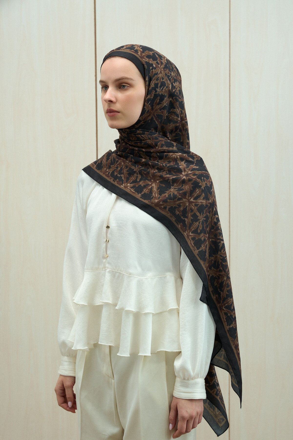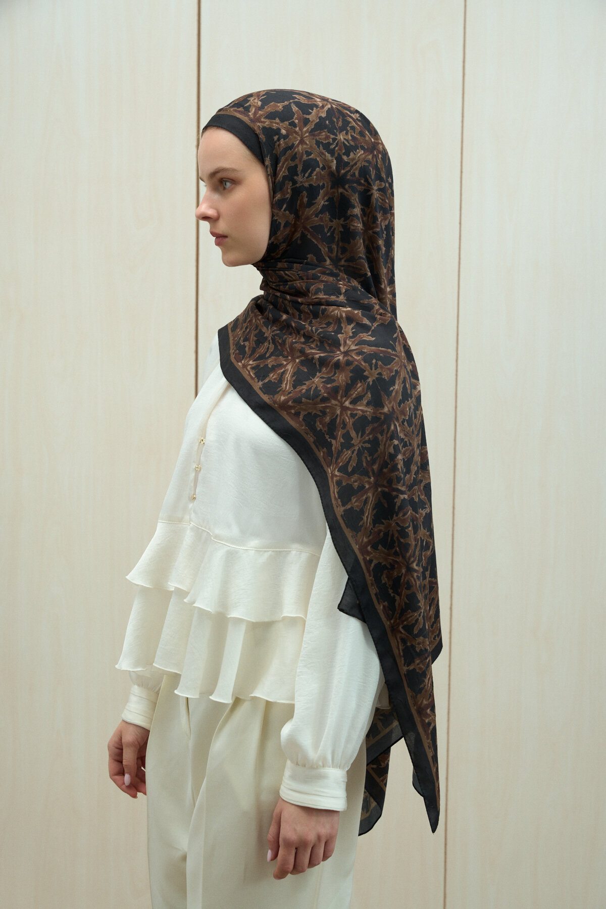 Vetra Kraş Şal - Siyah Bej - Camellia Scarfs Vetra Kraş Şal - Siyah Bej - Camellia Scarfs (1)