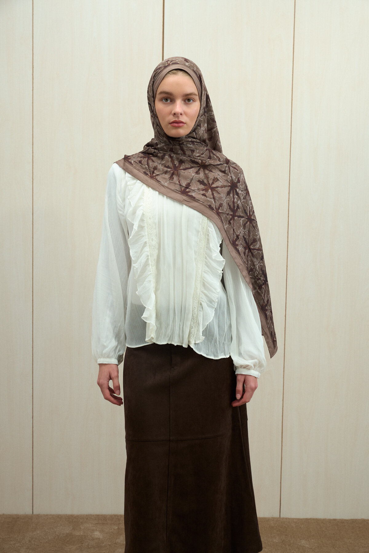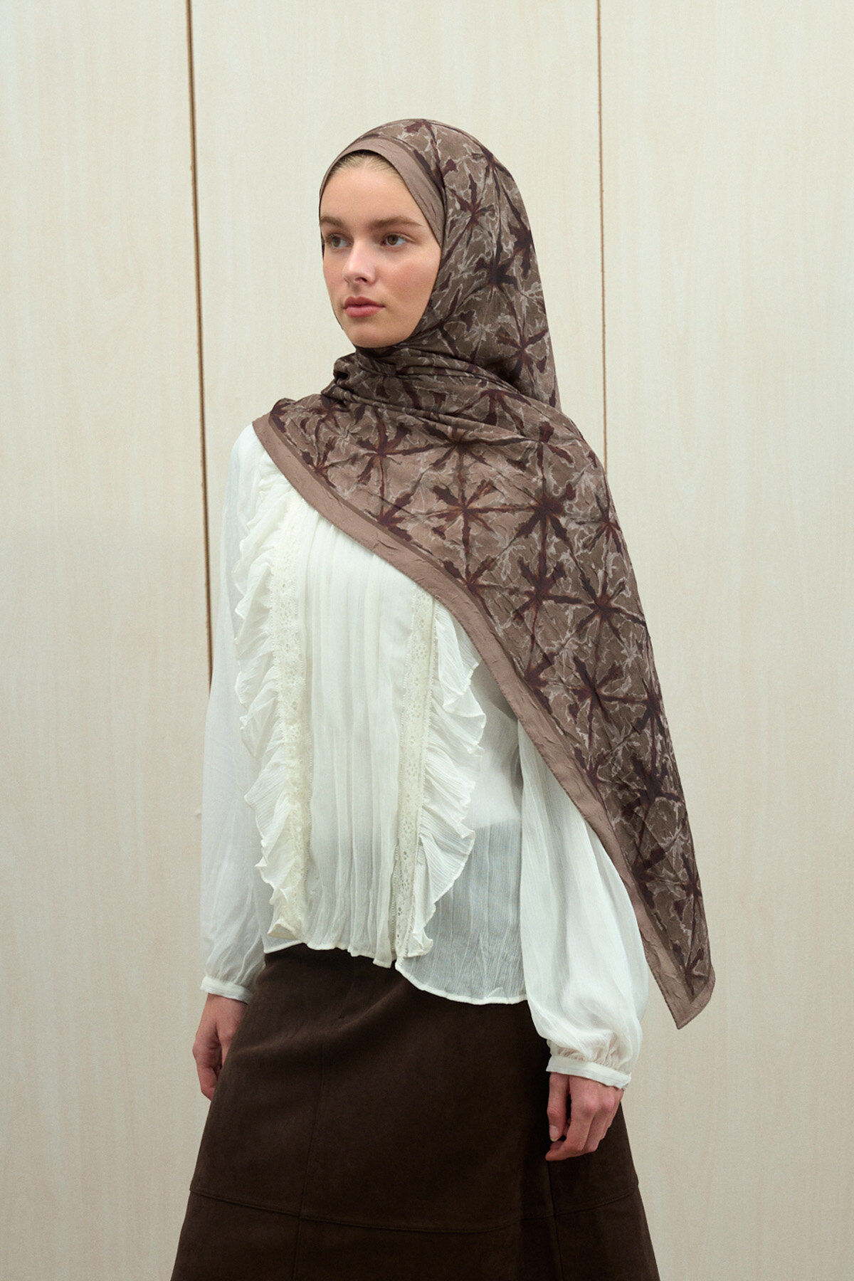 Vetra Kraş Şal - Kahve Pudra - Camellia Scarfs Vetra Kraş Şal - Kahve Pudra - Camellia Scarfs (1)