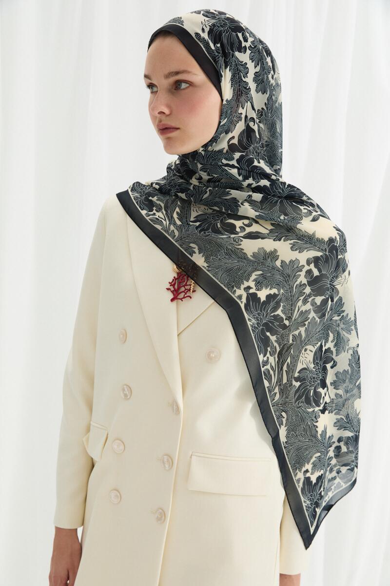 Blom Desen Soft Şal - Lacivert-Haki - Camellia Scarfs Blom Desen Soft Şal - Lacivert-Haki - Camellia Scarfs (1)