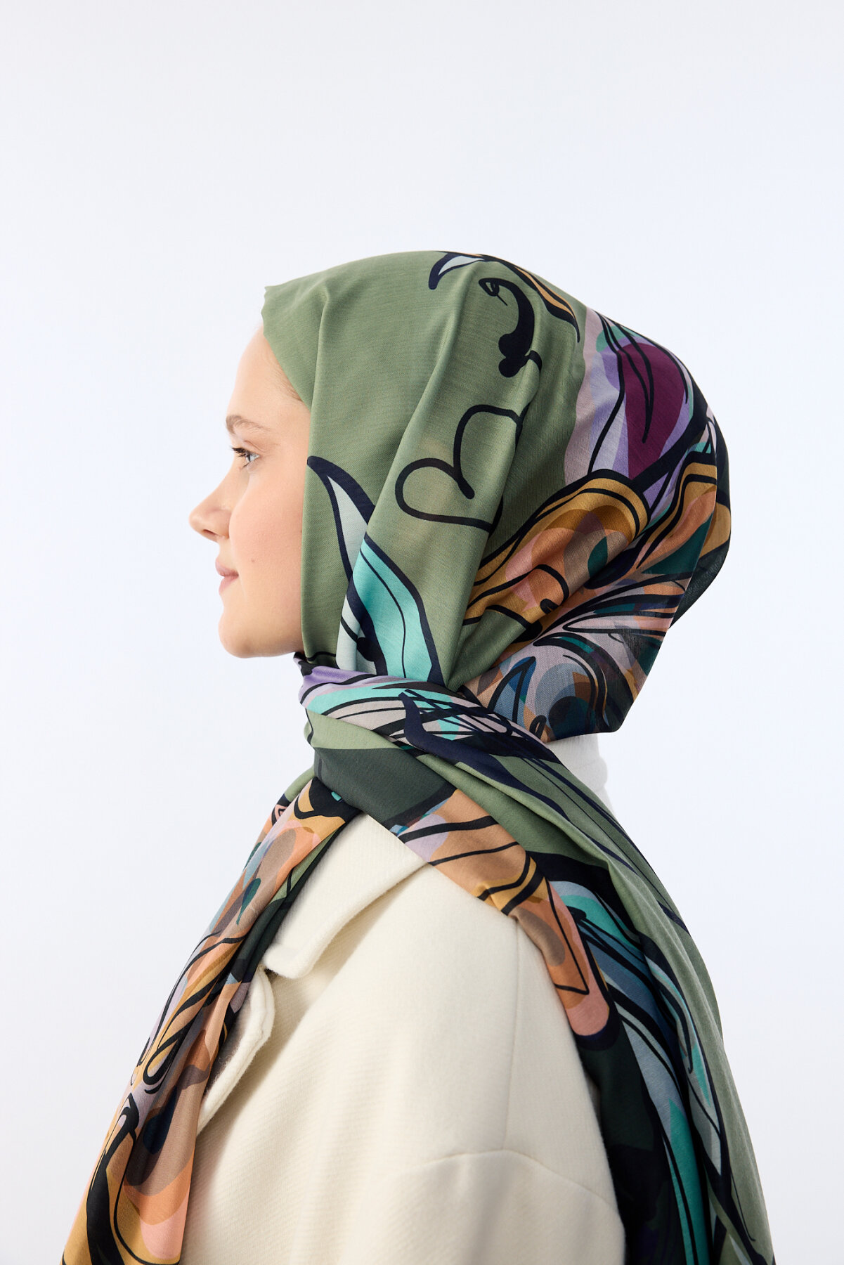 Watercolor Desen Soft Şal - Yeşil Mavi