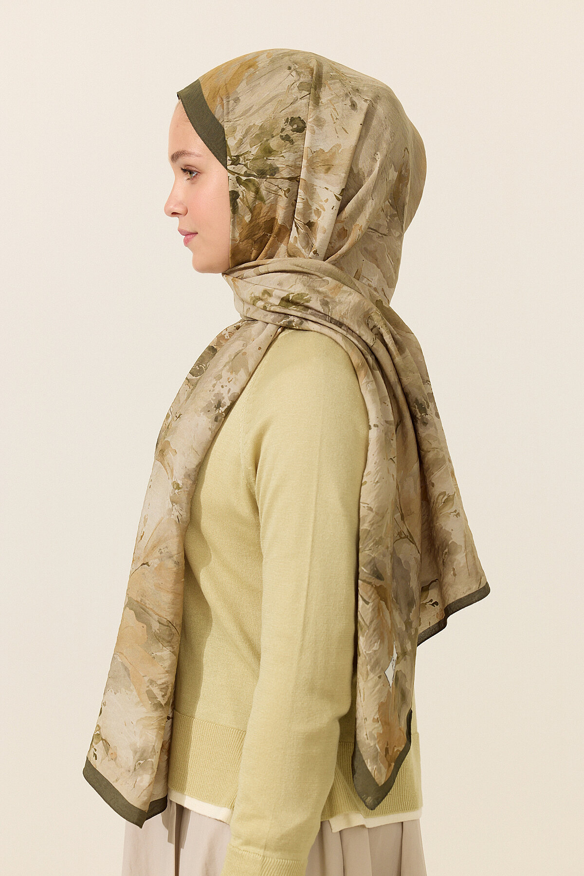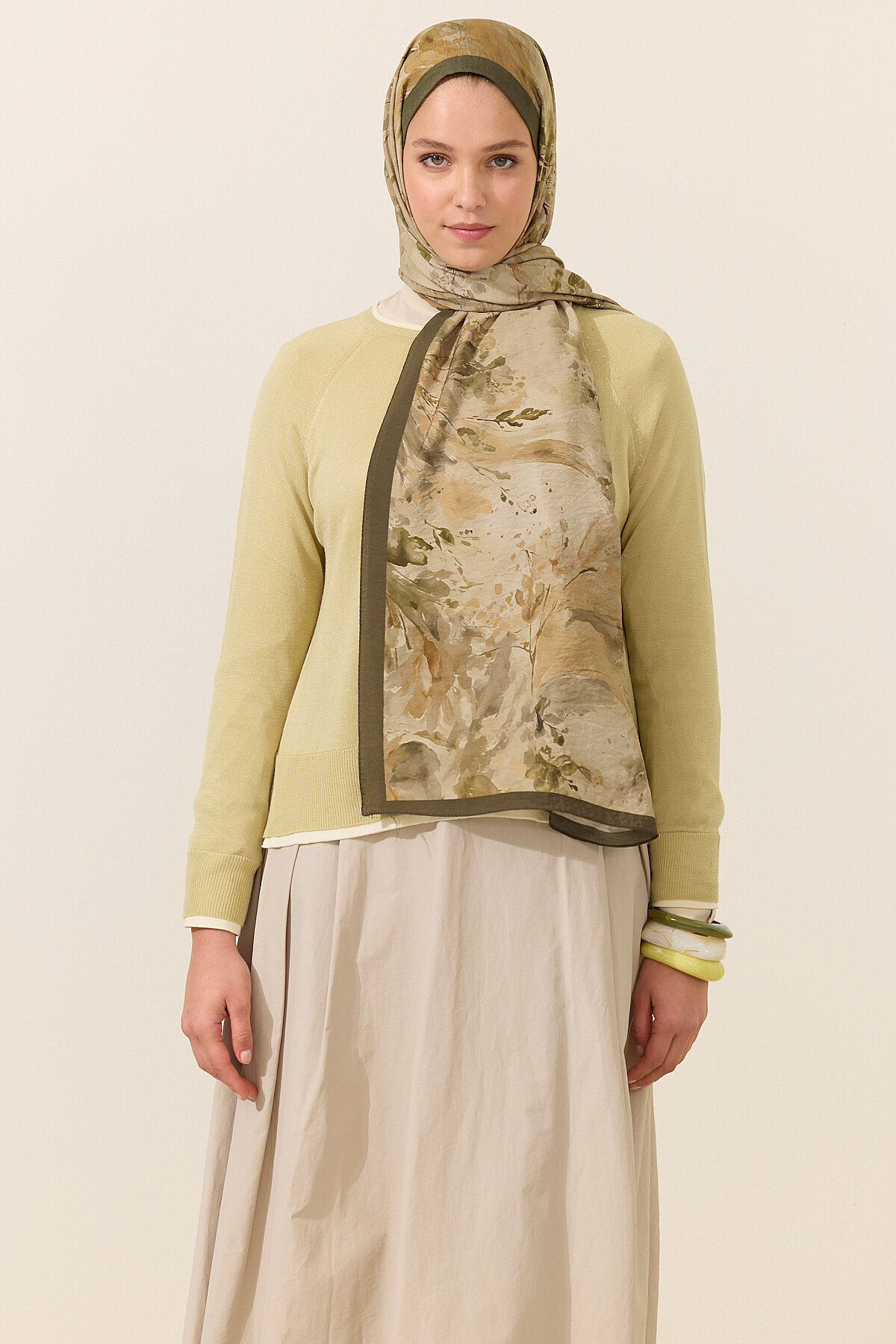 Watercolor Pamuk Viskon Şal - Yağ Yeşili